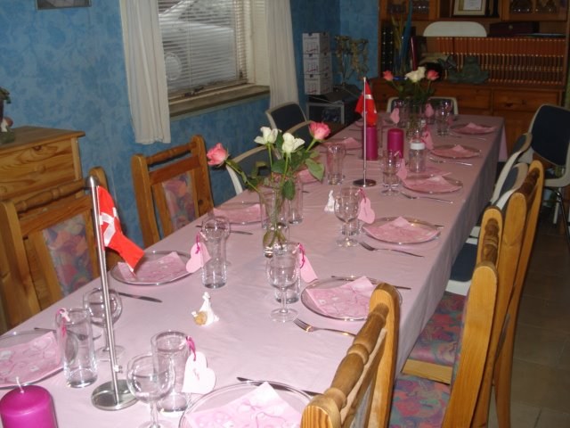 Vi holdte dåben hjemme af 2 omgange hvor vi var 5 til spisning til frokost og 18 til spisning om aftenen