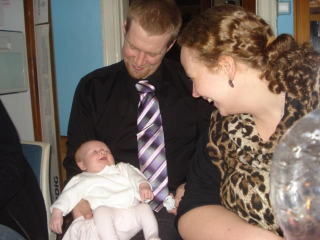 Dåben i kriken gik rigtigt godt, hun sov fra næsten det hele, hun åbnede kun øjnene da hun fik vand i håret og sov videre da hun var blevet tørt