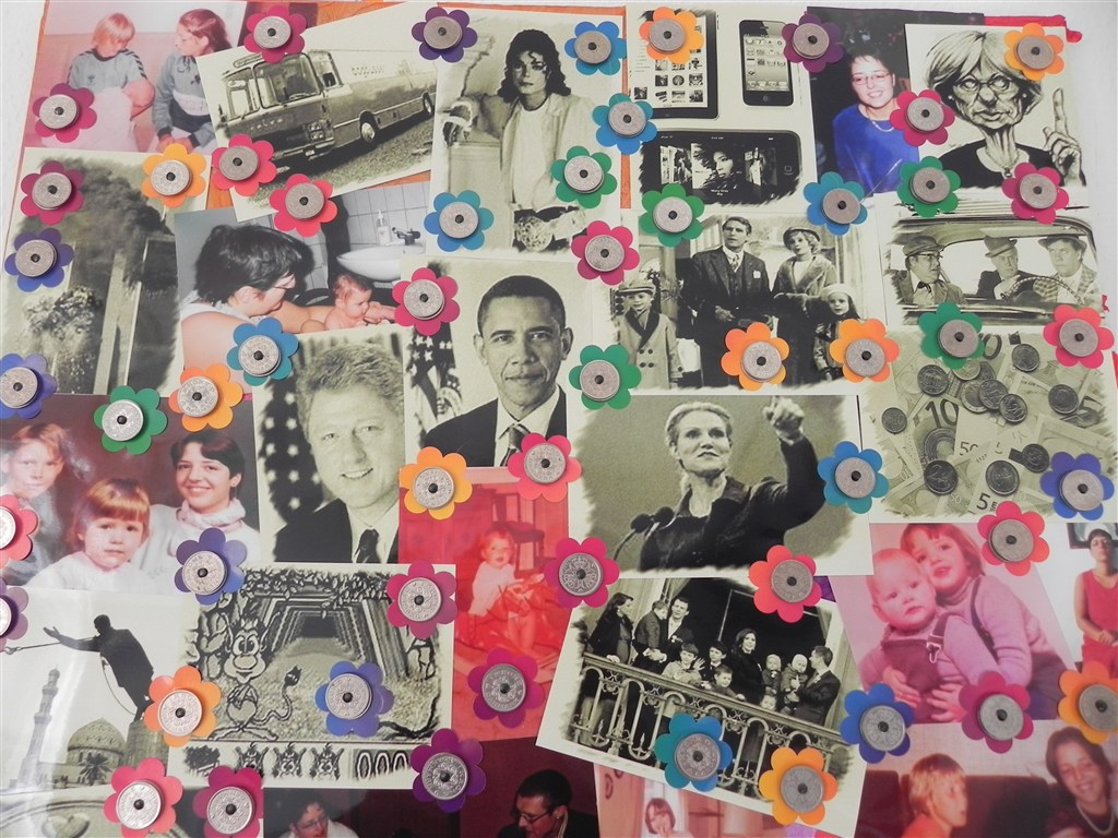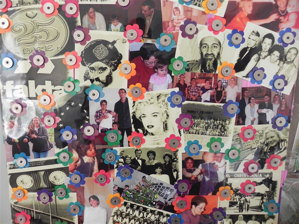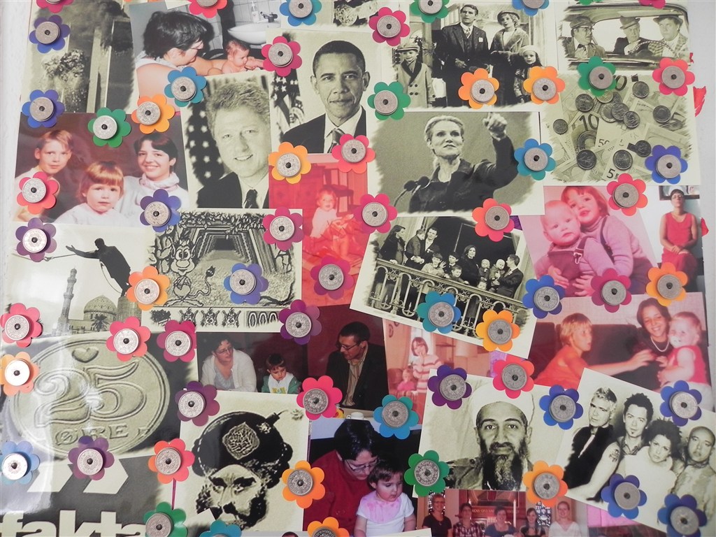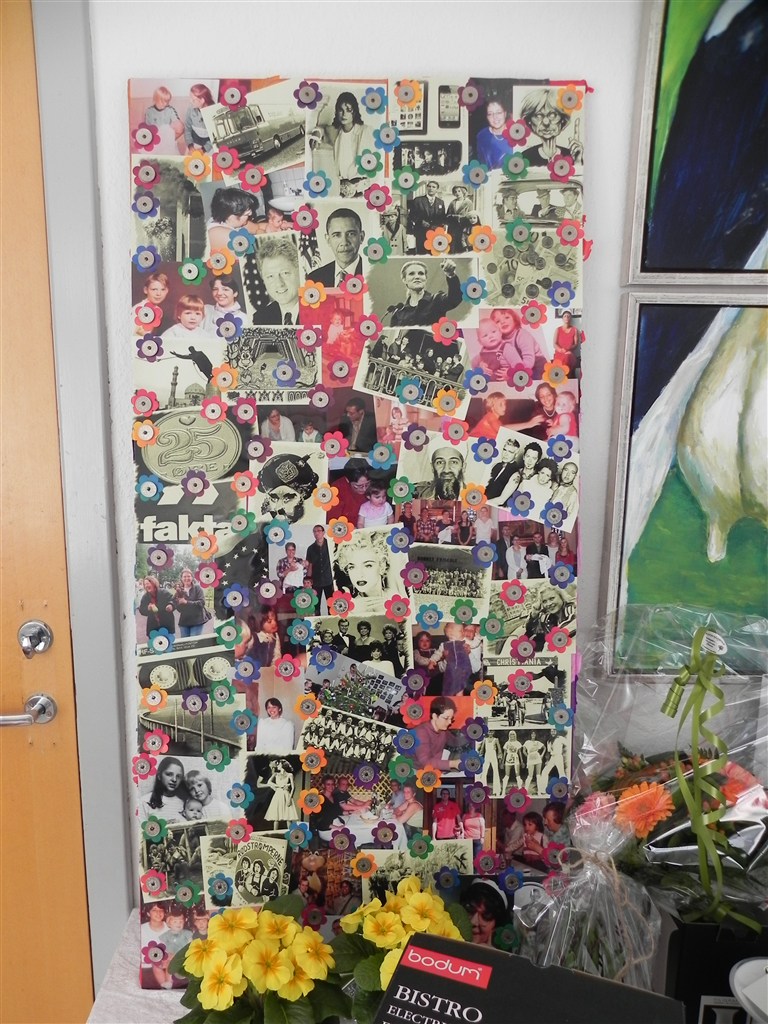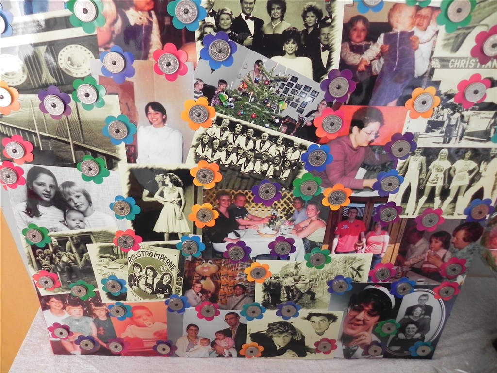 Limet billeder på, derefter blomster for tilsidst at hamre kroner på med søm...