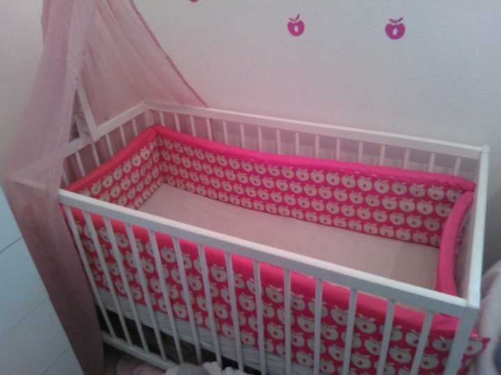 Hvis den skal være til en tremmeseng som er 60x120, skal banerne bare klippes efter det.