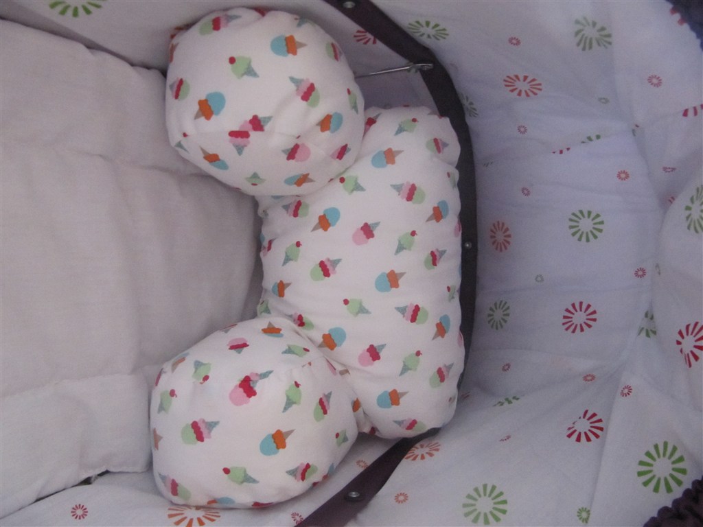 Jeg fik en forespørgsel fra en kunde, om jeg ikke kunne lave en pude til hendes datters dukkevogn. Dukken ligger jo bare der og kigger, den skal da også være med i det der sker udenfor - ligesom storebror.