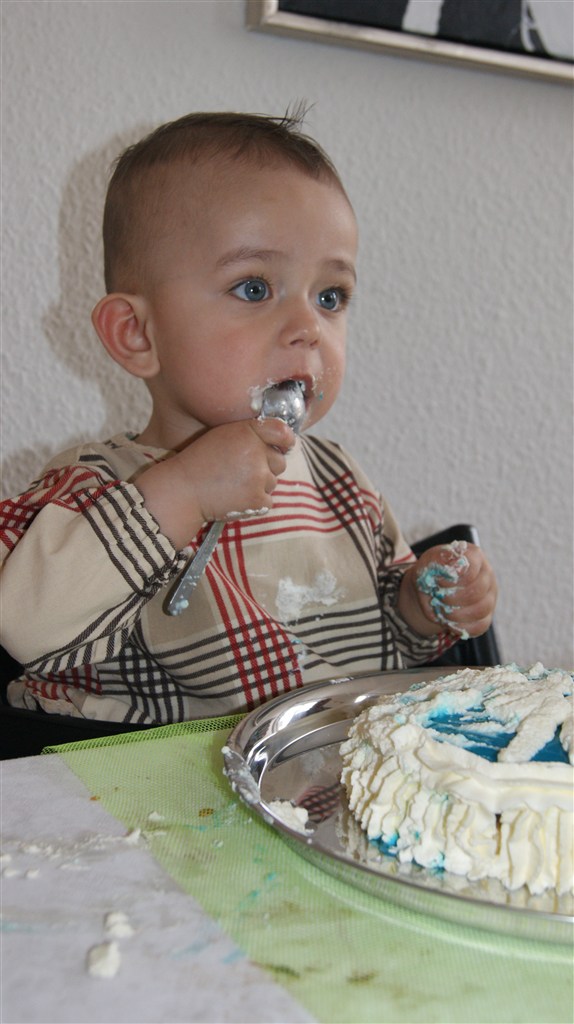 - Han kunne dog ikke helt finde ud af at spise uden skeen, det plejer man jo