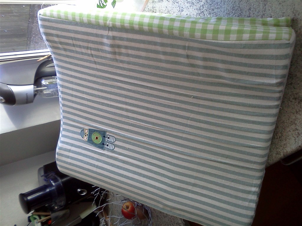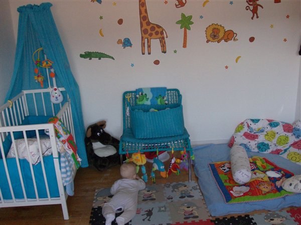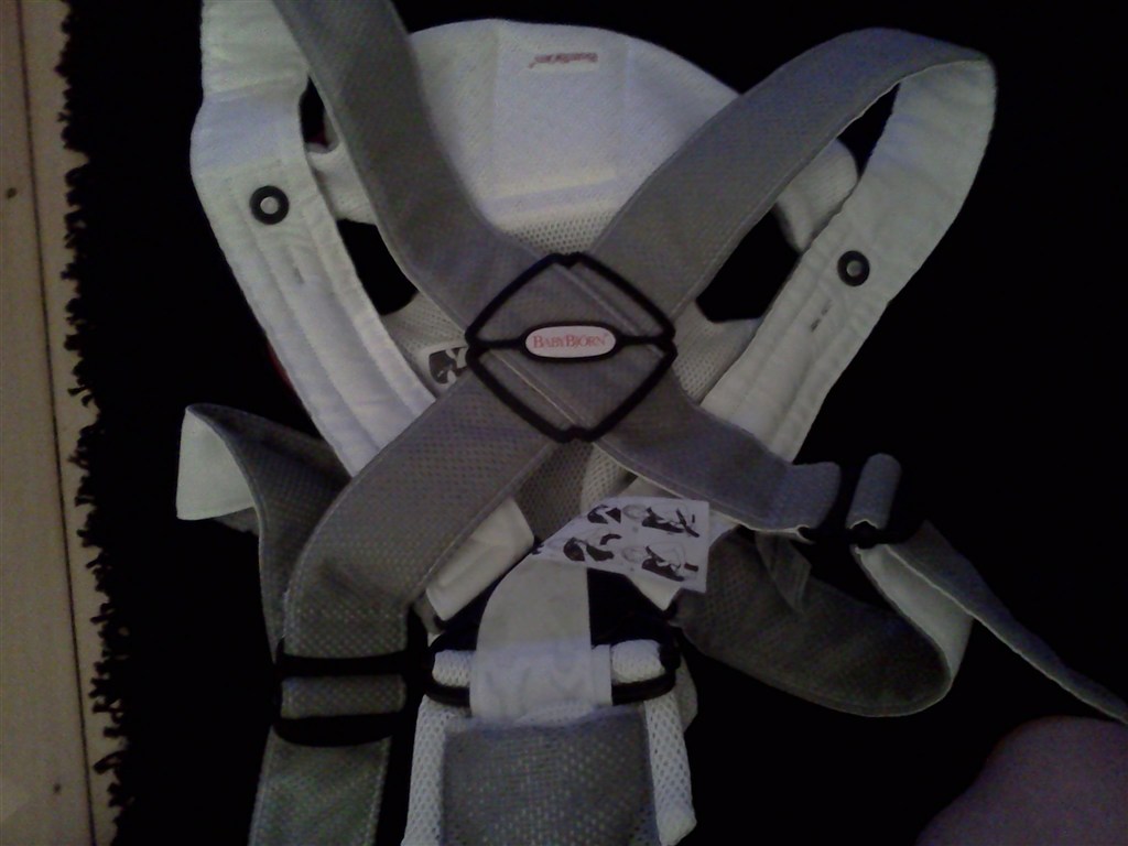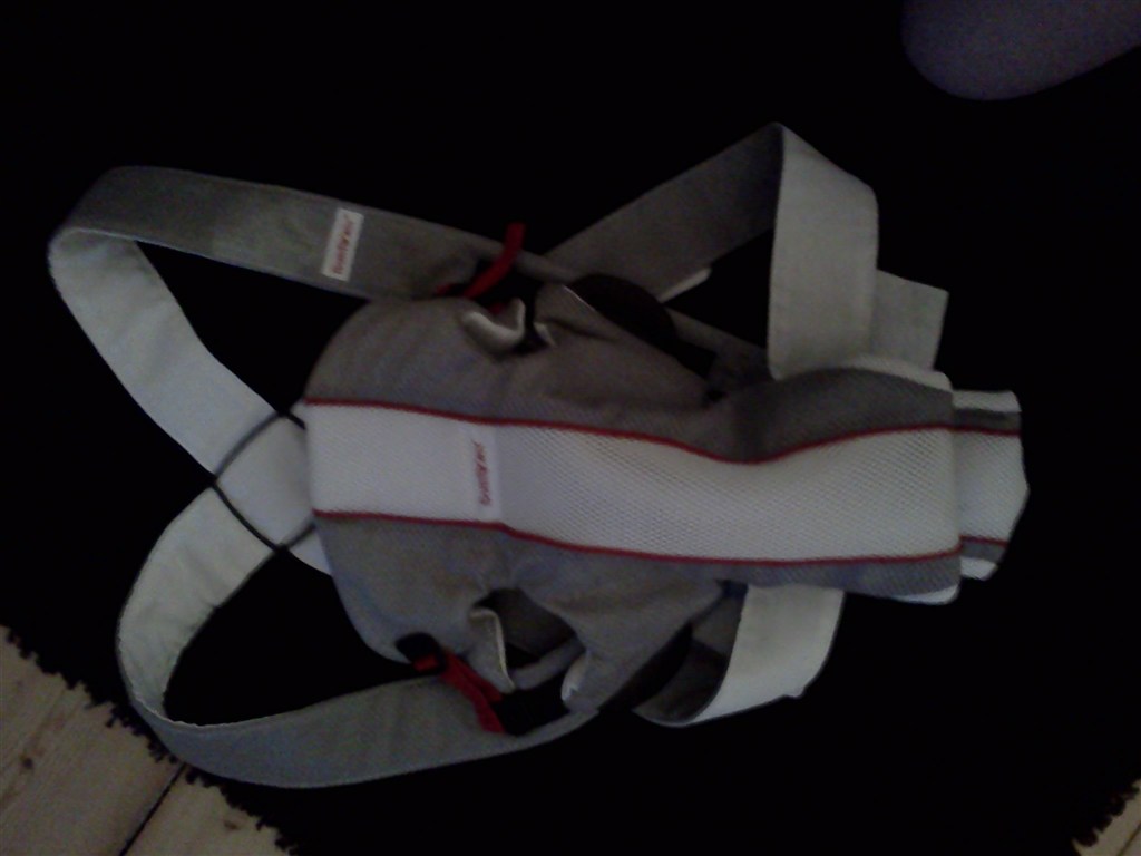 jeg har en bæresele og en puslepude, en hvid sengerend eller et turkis sæt med himmel, stang og sengerend..