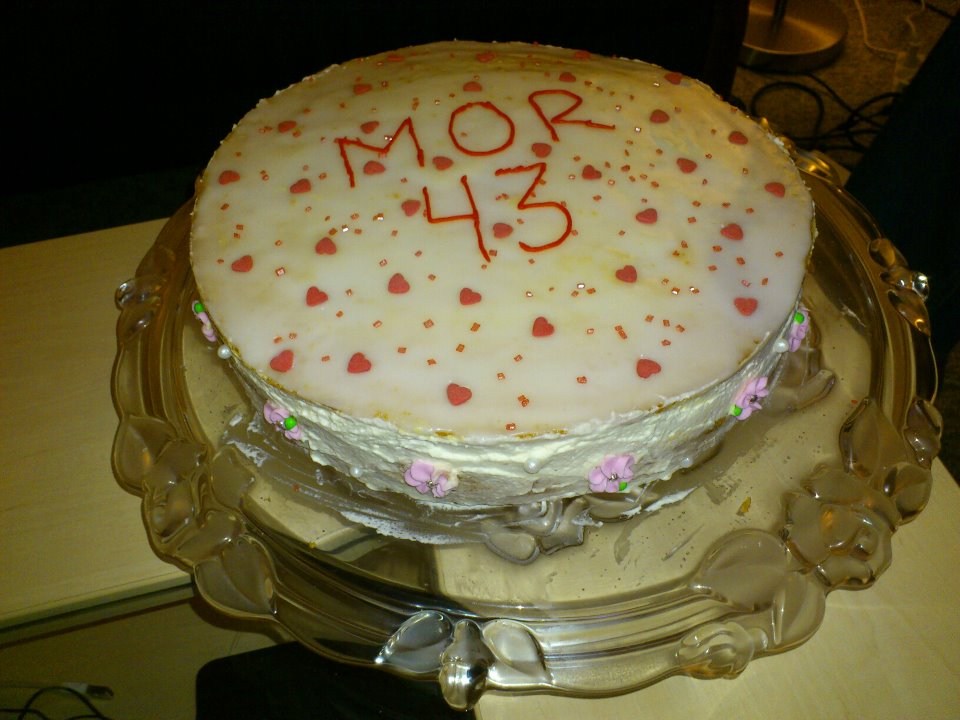 En fødselsdagslagkage! Jeg orkede ikke at overtrække med fondant, så det blev med glasur og flødeskum
