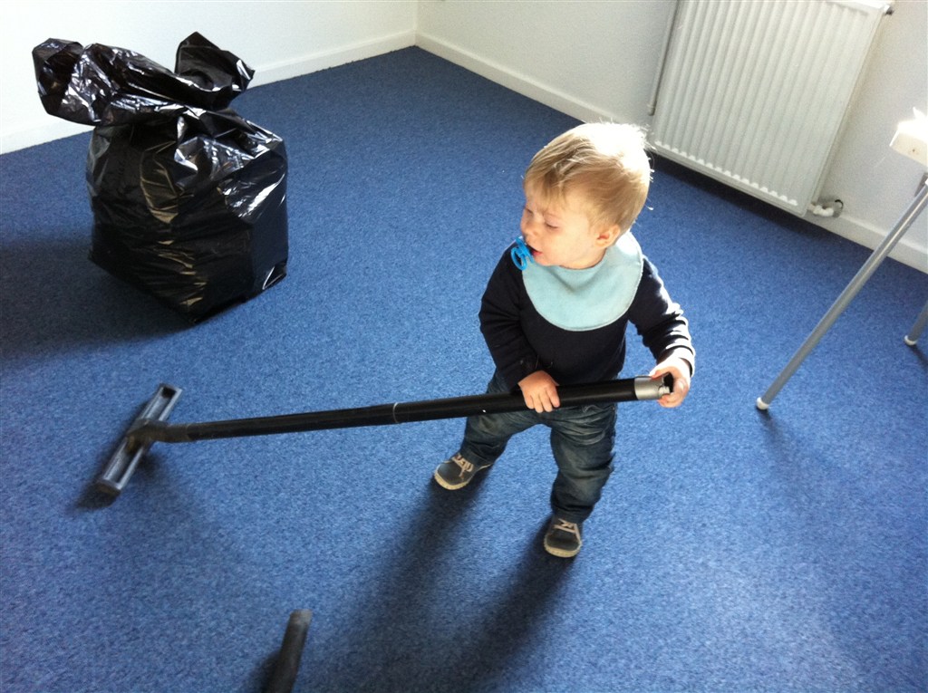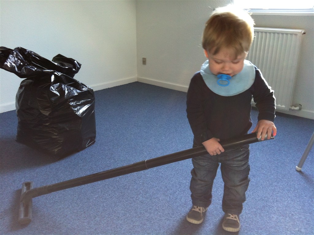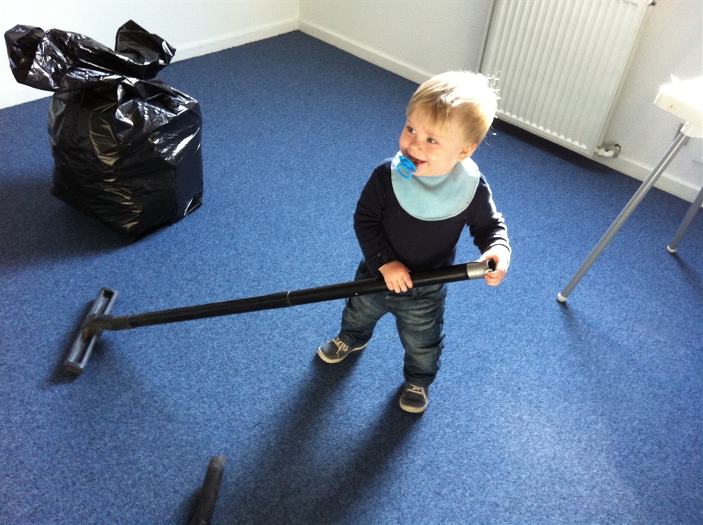 Haha... hvor er han cute! Men synes der mangler noget af den støvsuger