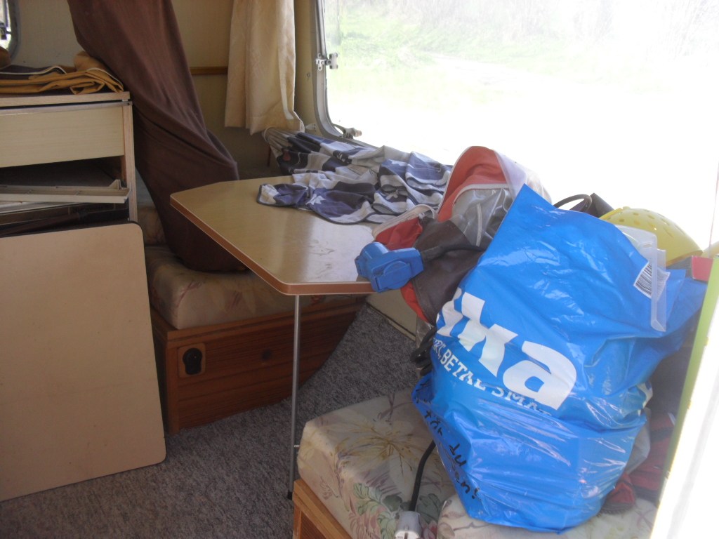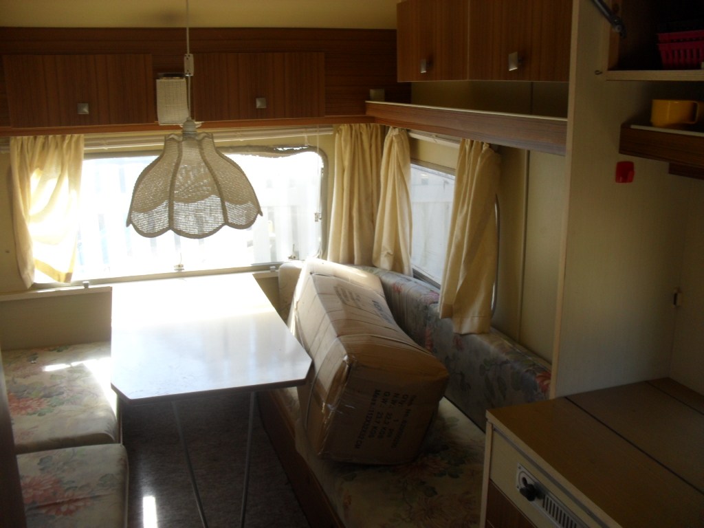den er lidt roddet. men skal bare gøres rent og ryddes op. har lige købt nyt fortelt til det og vi har plastik bord og stole, (tror nok) alt i inventar. så der skulle bare kunne nydes en dejlig ferie. skal selv afsted inden da så ved jeg om der kommer til at mangle noget og får det købt. vi købte den fordi min mand aldrig har været på camping og jeg er opvokset med camping. og det er super lækkert med børn.