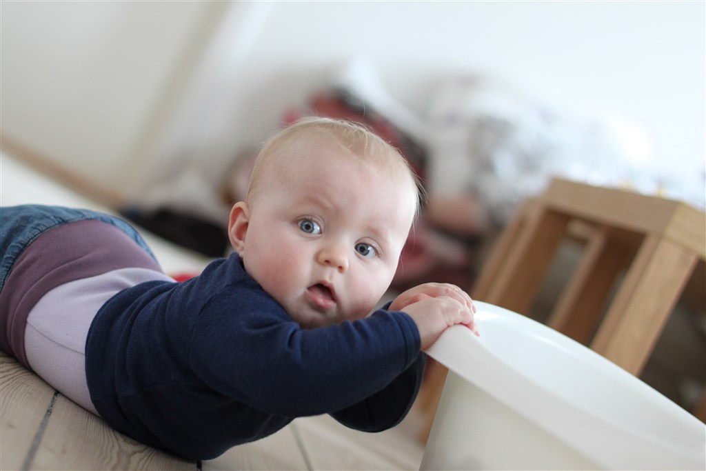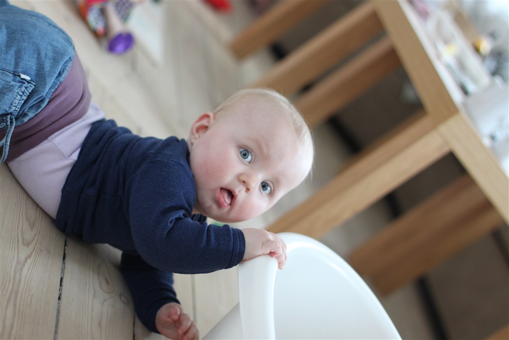 men SP sagde at hun ikke var bekymret for selvom hun ligger langt oppe på vægt kurven så er hun jo super mobil og ruller rundt i hele hytten hun kommer langt op på armene, men har ikke helt fået benen med endnu, så der er ikke nogen kravestilling endnu..