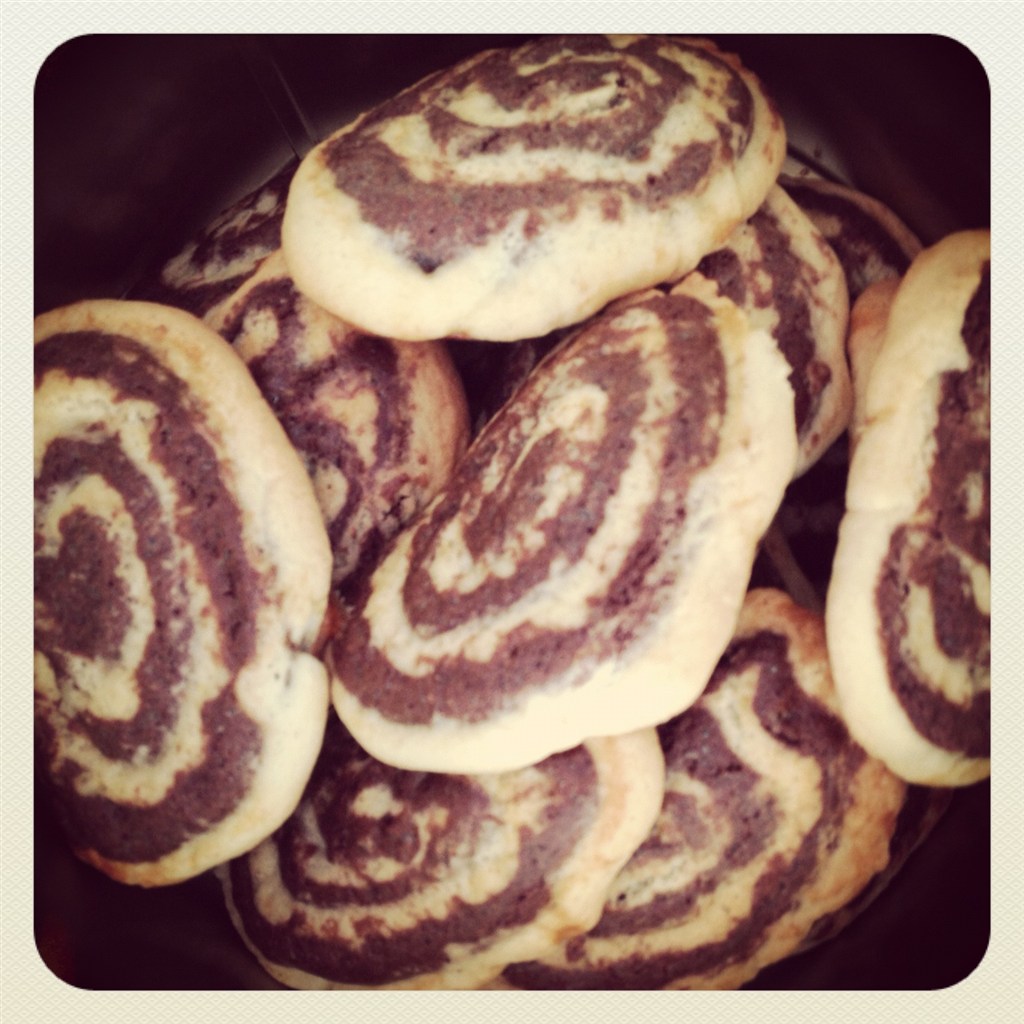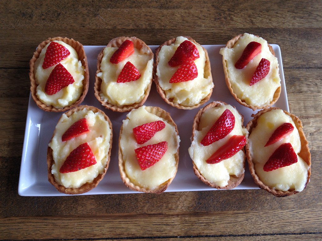 De første er skaller med kagecreme og jordbær og de sidste er vanillie / chokolade småkager.