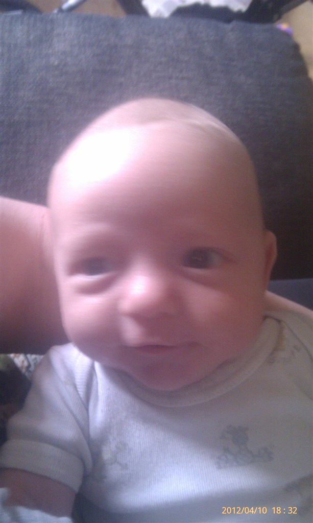 Jeg bliver simpelthen nød til at vise jer, vores dejlige dreng!Han er 6 uger - 7 på torsdag, han vejer 5300g og er 60 cm Også fangede jeg ham med kameraet da han smilte idag! JEG ELSKER AT VÆRE MOR