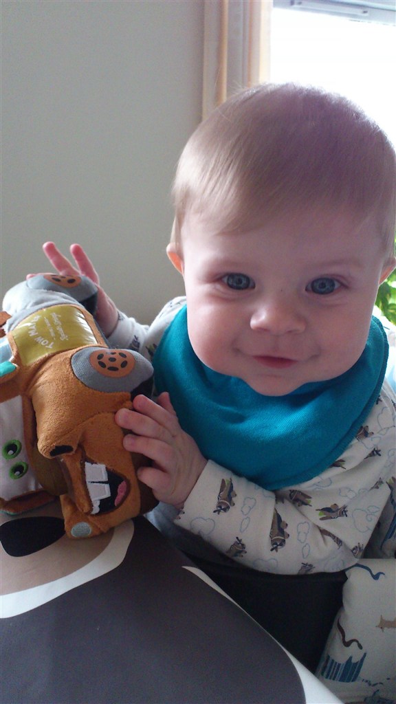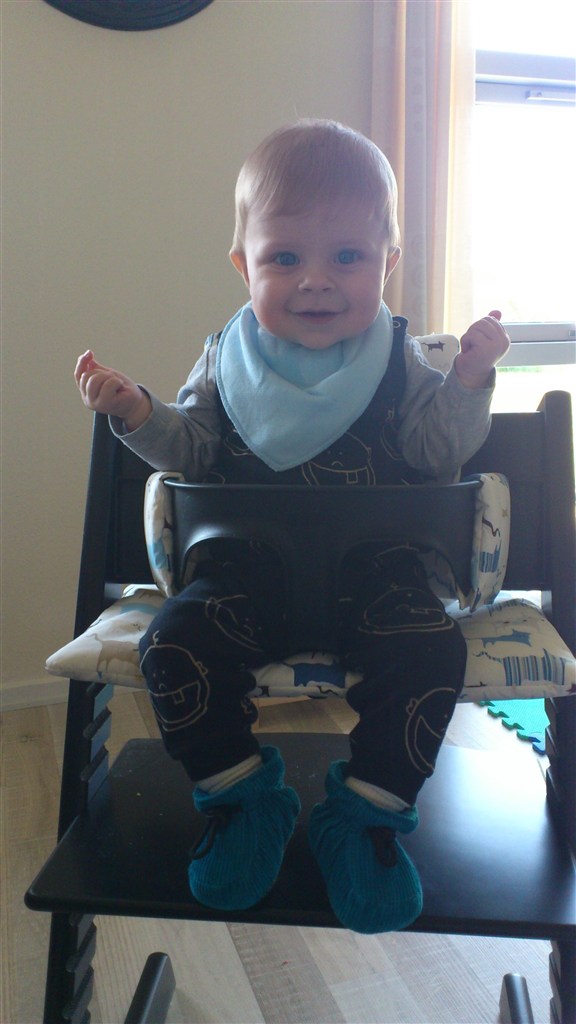 William bliver allerede 7 mdr her på fredag, jeg forstår slet slet ikke tiden går så hurtigt! Det er længe siden han er blevet målt og vejet, men vil gætte på 74 cm og 8,2 kg