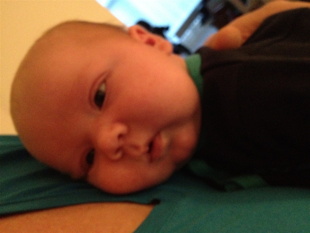 Han holder hoved selv nu og vil meget gerne trille