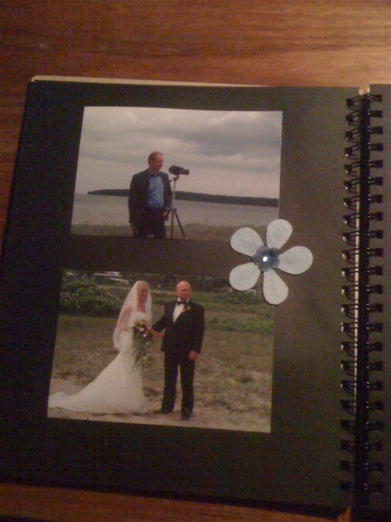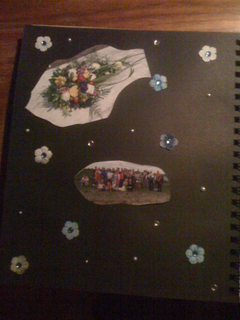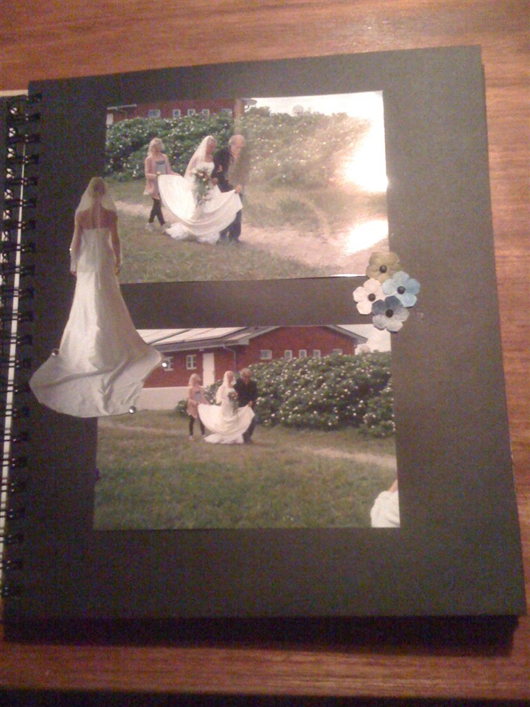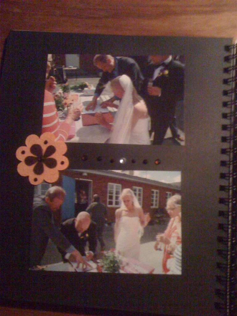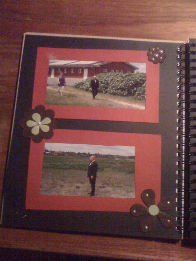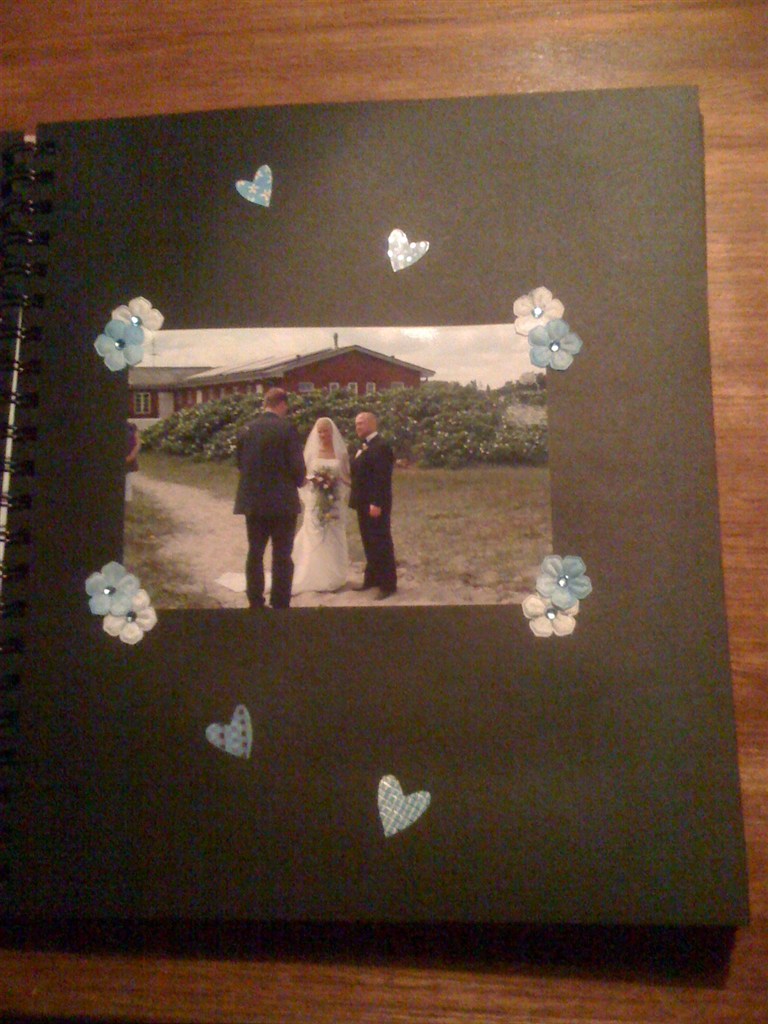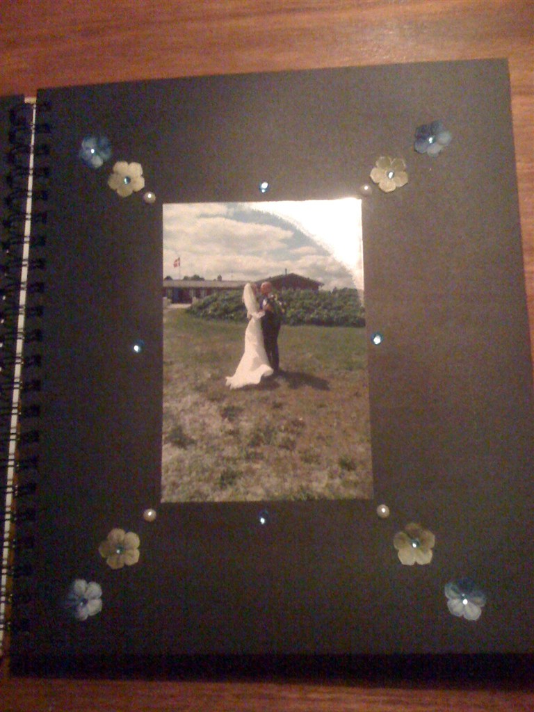 Det er en lysebrun bog, men har købt papir og selv sat forside på - så kan man selv bestemme farven - siderne var sorte, og det passede mig godt for så ville billederne stå mere ud