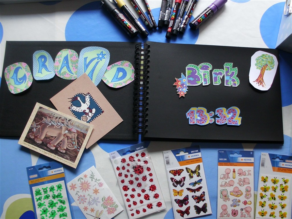 Forsiden til vores søns scrapbog har min mand lavet