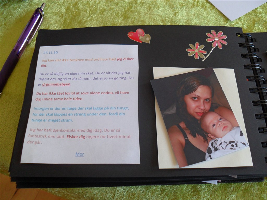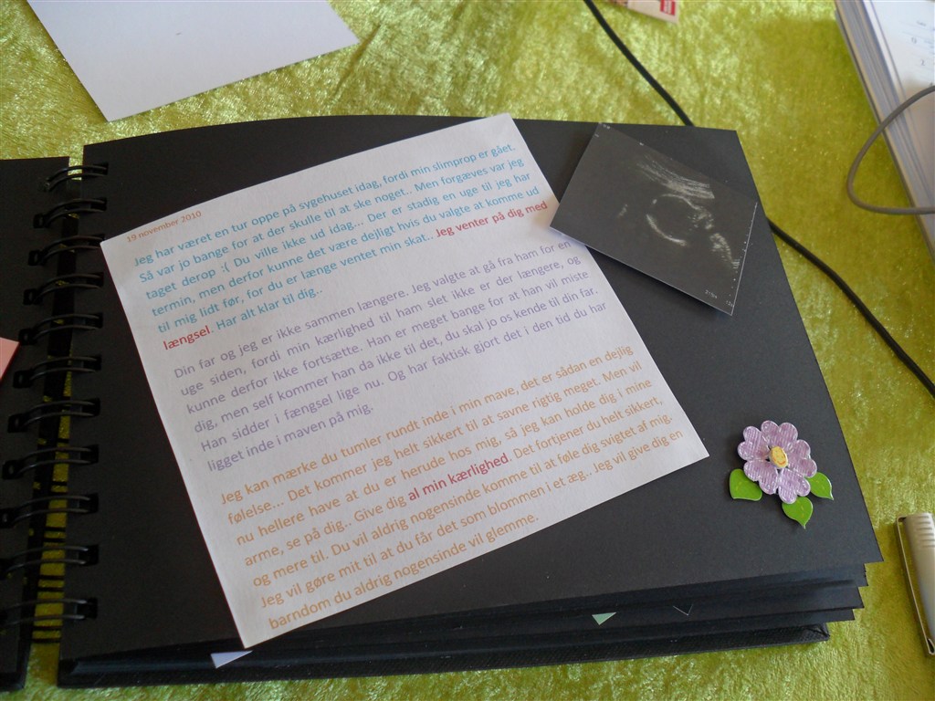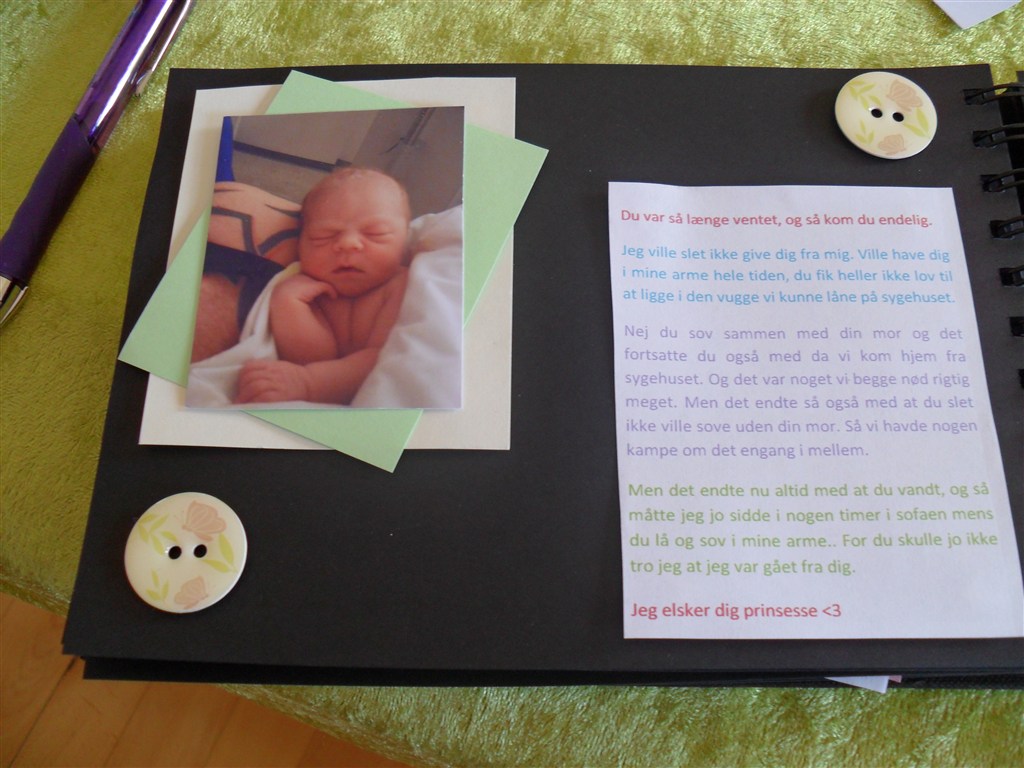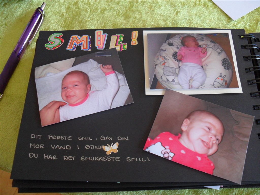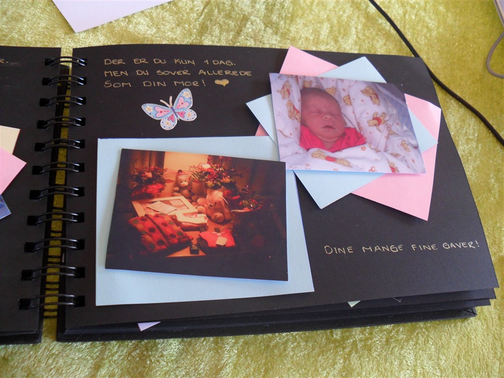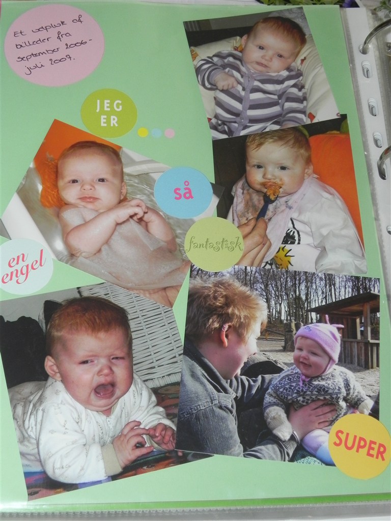 Jeg har en barnets bog til min datter med løse sider og plastiklommer. Dvs at den fungerer lidt som en scrapbog, hvor man kan sætte alt muligt ind og ikke kun skrive i forbestemste felter. MEN jeg er simpelthen så ukreativ og er sådan en med ti tommelfingre, så jeg har aldrig fået gjort ret meget ved den, bortset fra at samle diverse småting/kort/tegninger o.lign., som jeg gerne vil gemme og have ind i den.