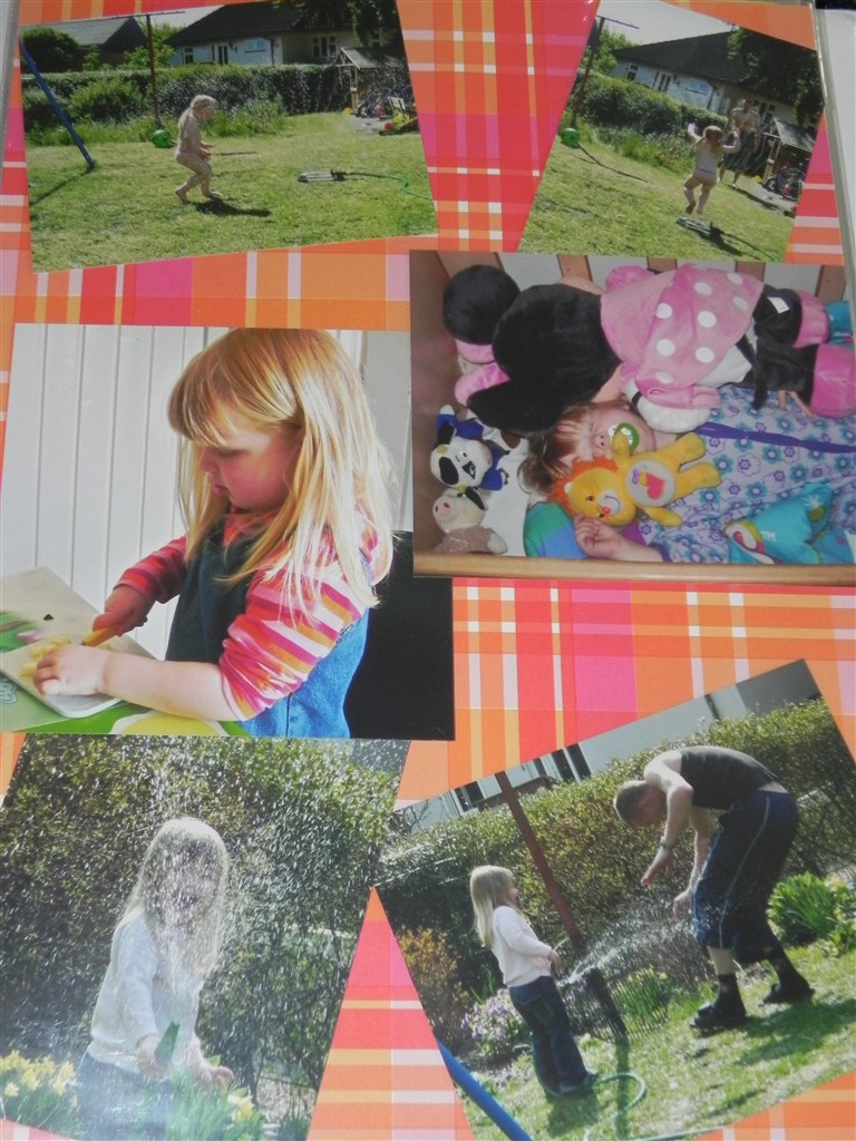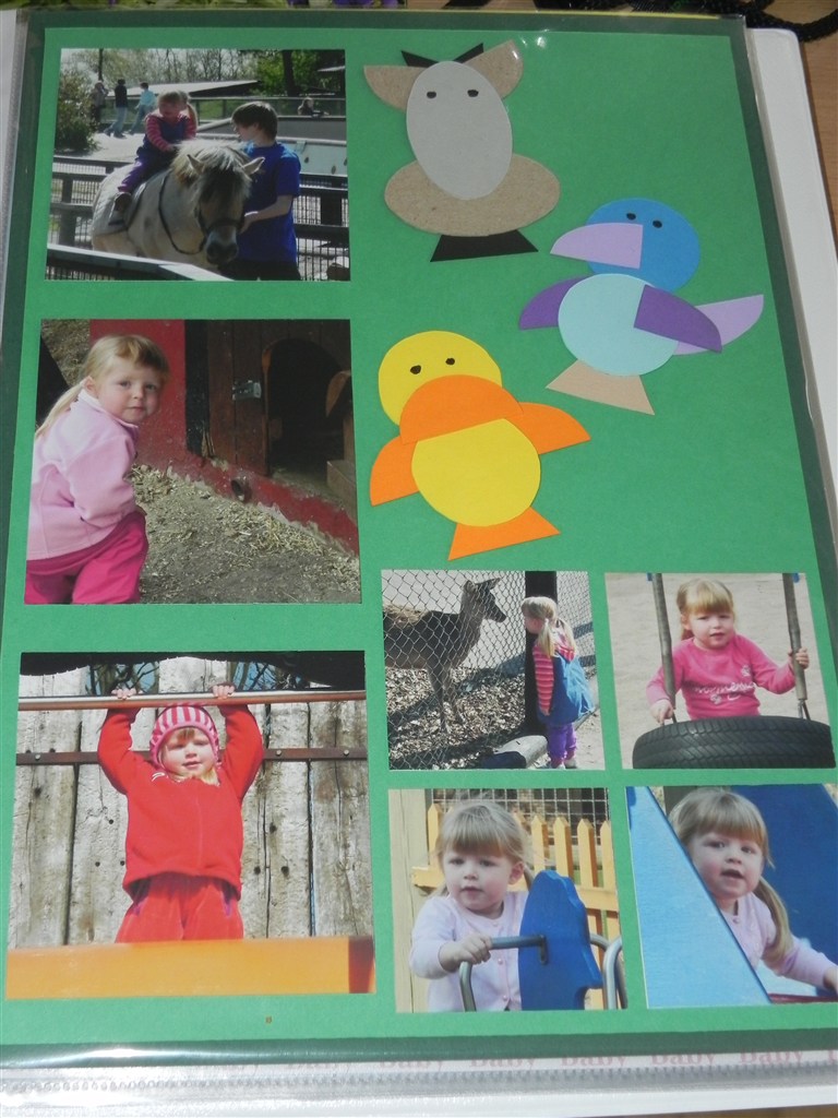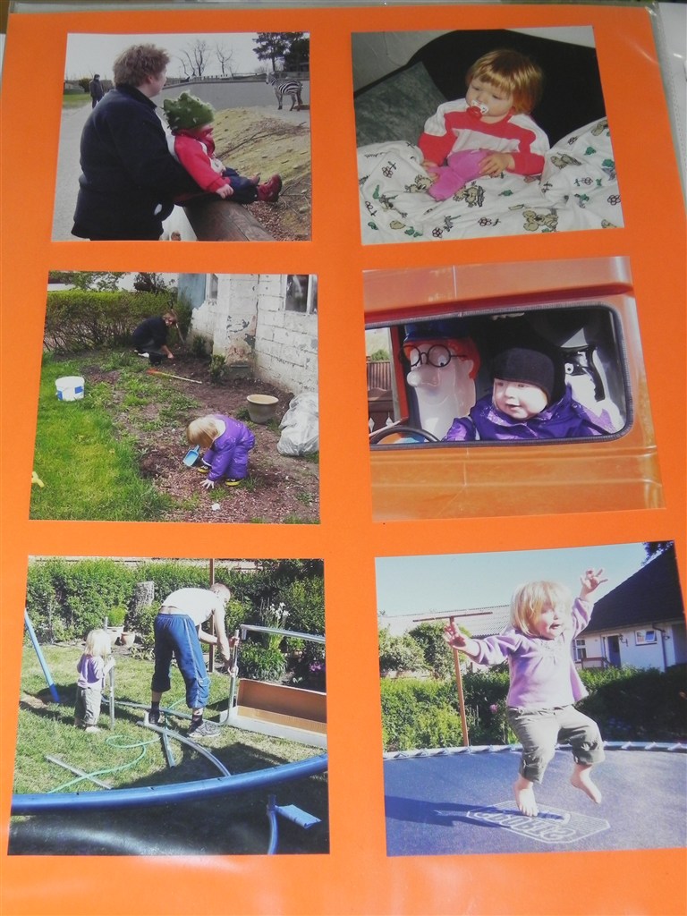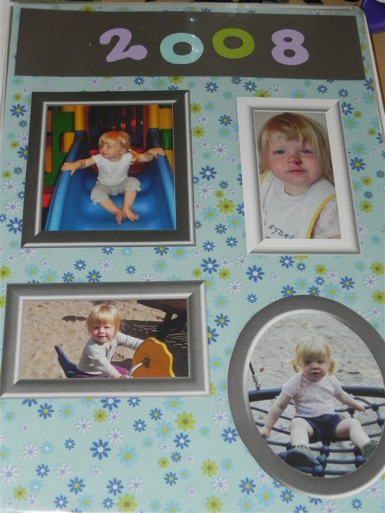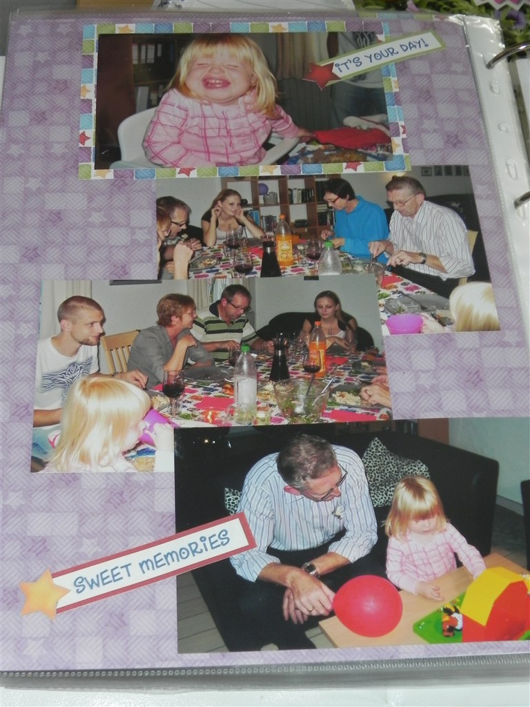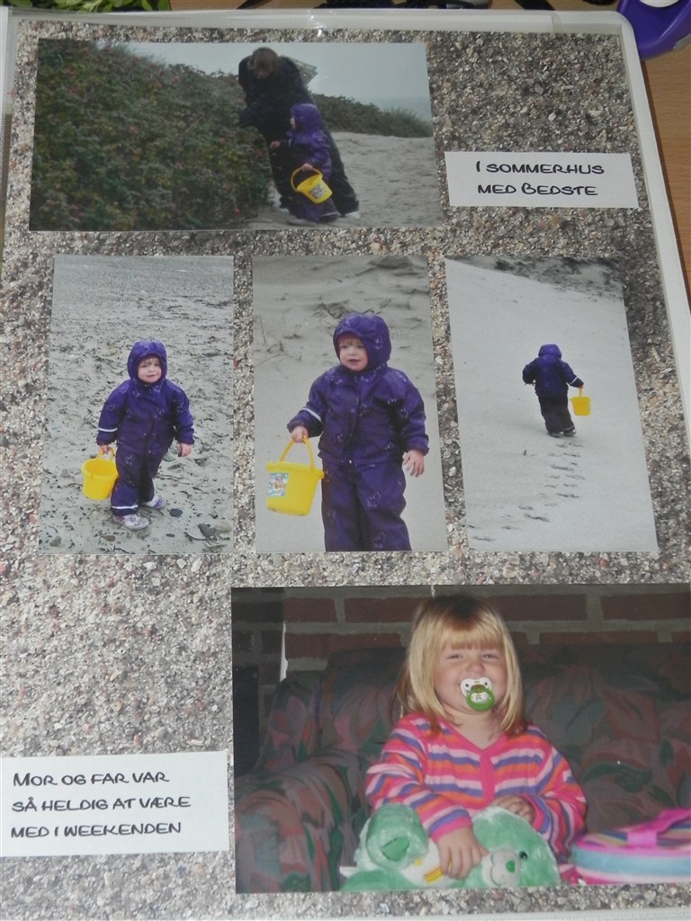 Jeg har en barnets bog til min datter med løse sider og plastiklommer. Dvs at den fungerer lidt som en scrapbog, hvor man kan sætte alt muligt ind og ikke kun skrive i forbestemste felter. MEN jeg er simpelthen så ukreativ og er sådan en med ti tommelfingre, så jeg har aldrig fået gjort ret meget ved den, bortset fra at samle diverse småting/kort/tegninger o.lign., som jeg gerne vil gemme og have ind i den.