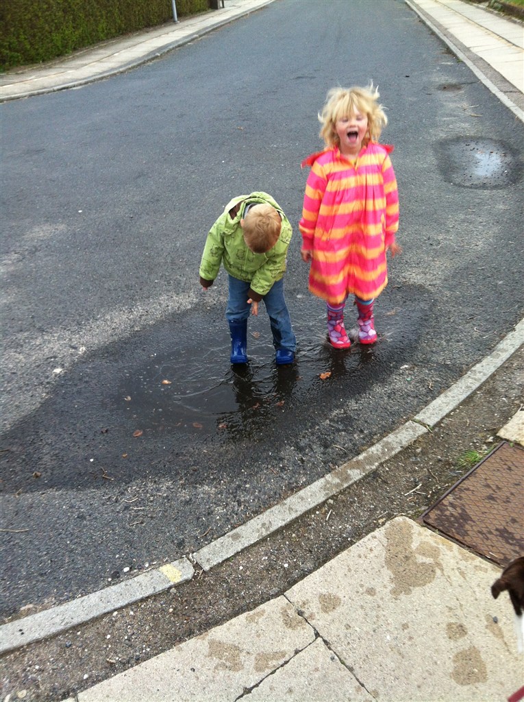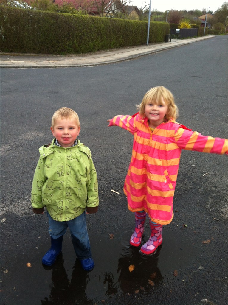 Ja det er dejligt. Frisk luft er altid godt. Og så fandt vi lige en vandpyt de kunne hoppe i
