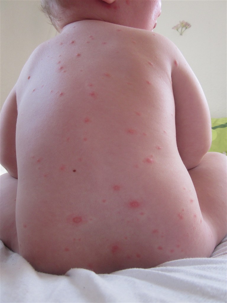 Ja det er han, han har en lille smule feber og fordi der er kommet skorpe på de fleste af dem nu her, såer de begyndt at klø rigtig meget og være irriterende...