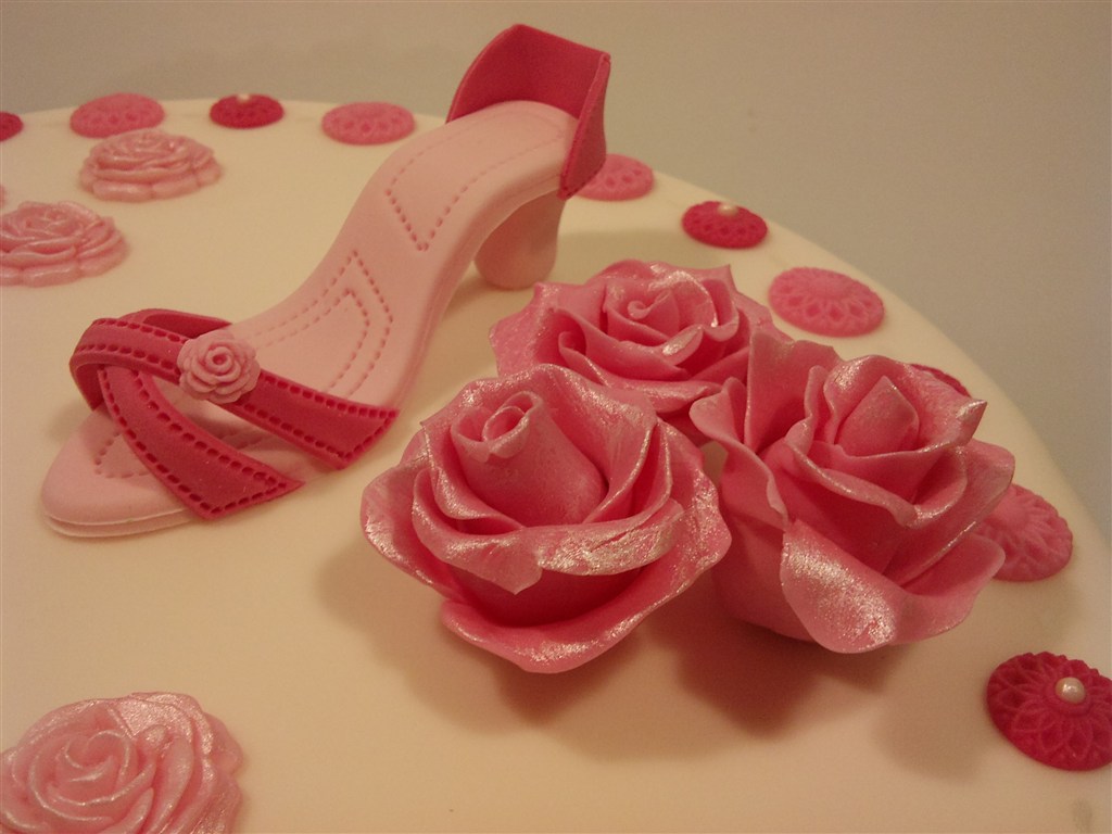 Det skulle være i lyserøde farver med diadem og højsko. Roser og en "halskæde" til at samle det hele...