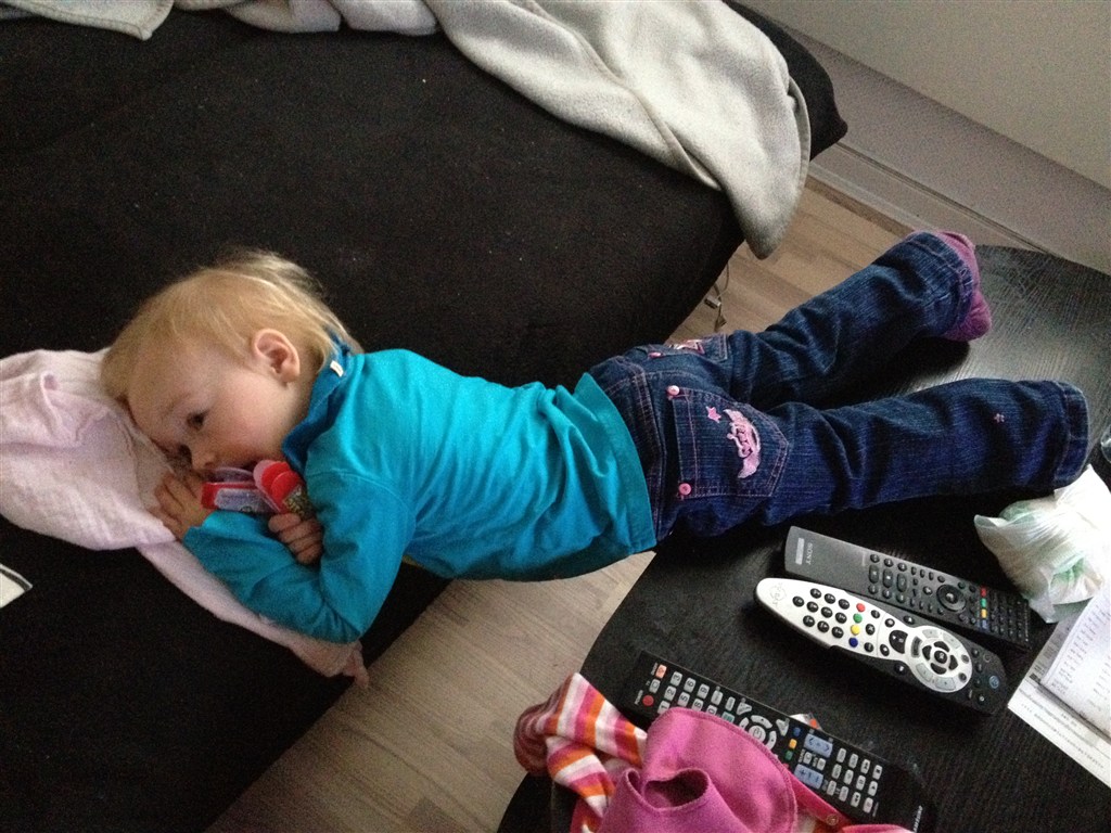 Og så elsker hun at se To på flugt. Næsten lidt for meget. Tror hun har set den minimun én gang om dagen mens hun har været hjemme med skoldkopper