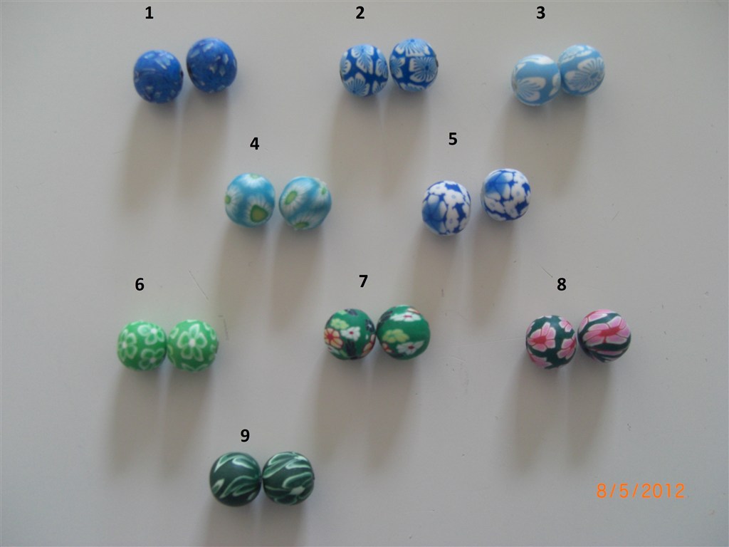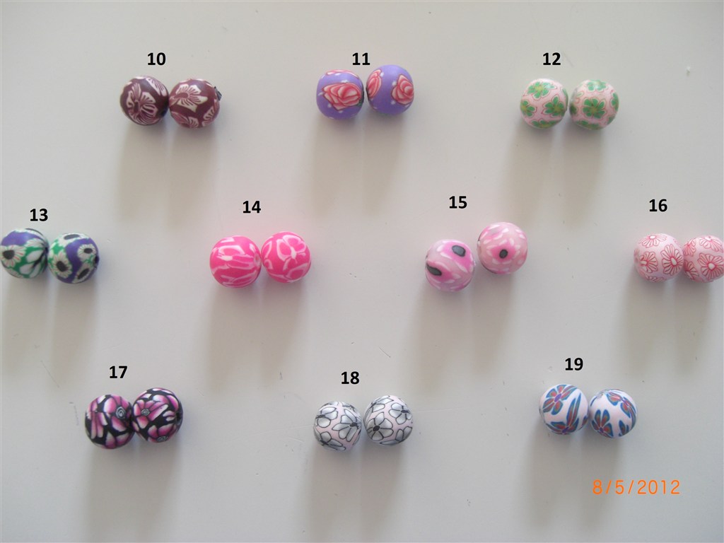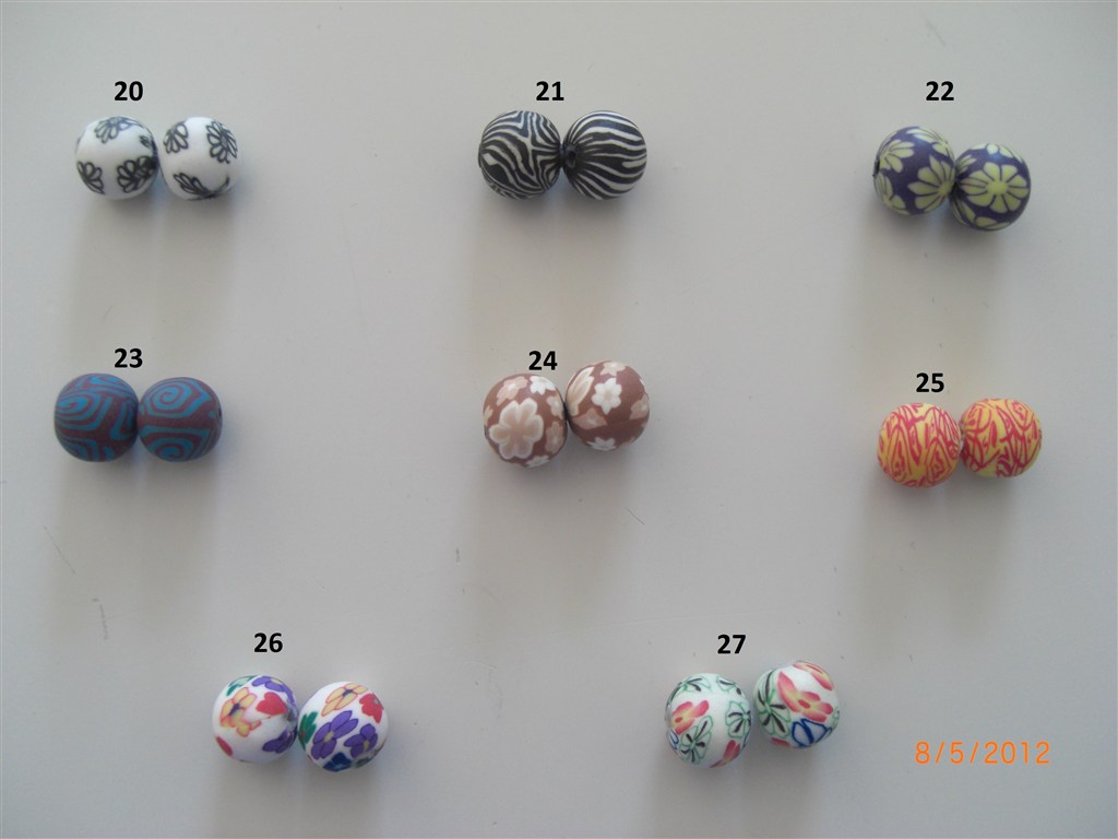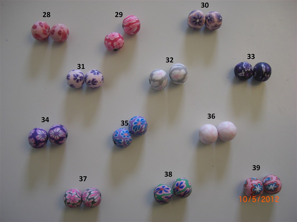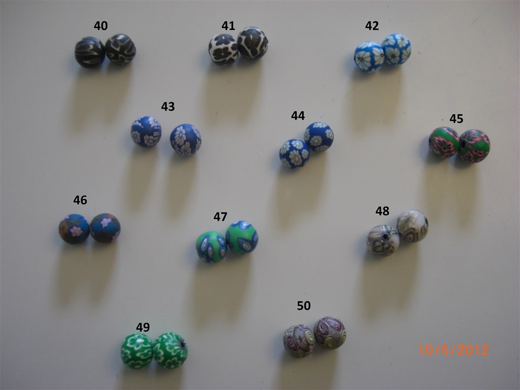 De farvestrålende fimo-perler i intet mindre end 50 forskellige farver/designs, men der er kun enkelte par af hver så det er først til mølle!