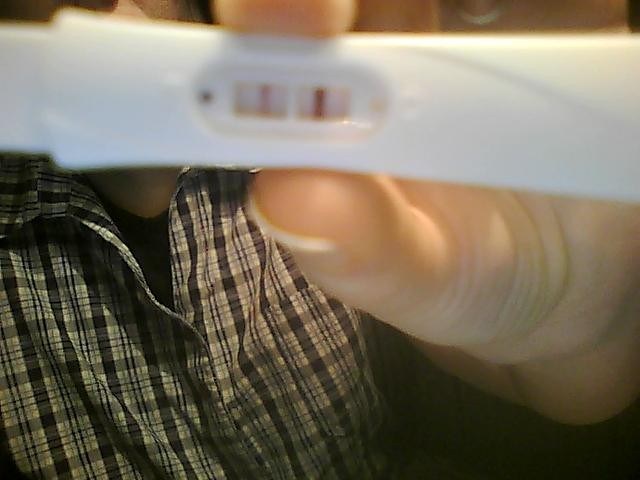 Men her kan du se hvordan testen så ud da jeg tog den i går... Hvad tænker du??????? Har stadig ikke nogen tegn på mens... Hmm.... Måske jeg blot må vente nogle dage og forvente den kommer snarest så, så jeg kan blive sikker
