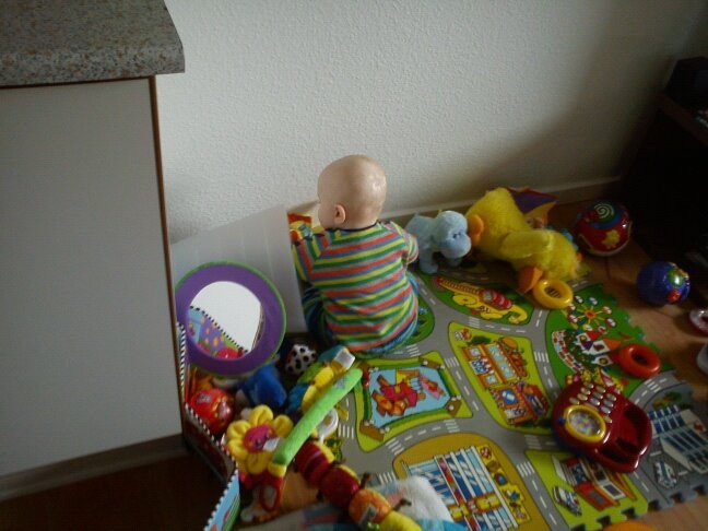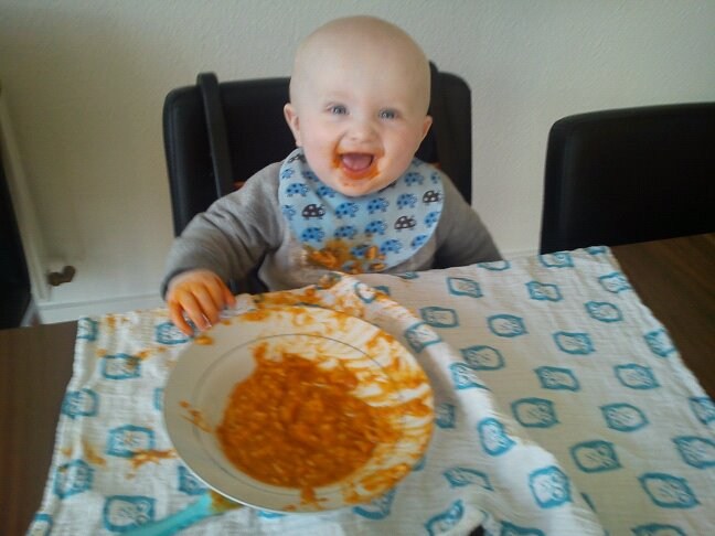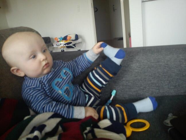 Tiden den går SÅ stærkt synes jeg... 8 1/2 måned er han nu........... Og spiser almindelig mad, har fået fast sengetid, begynder at kunne "vise" nogle ting f.eks når han er tørstig.... Har nogle yndlingssange, reklamer, han har allerede en reklame han tuder til ..... Og jaaa lige nogle af de nyeste billeder af bassen