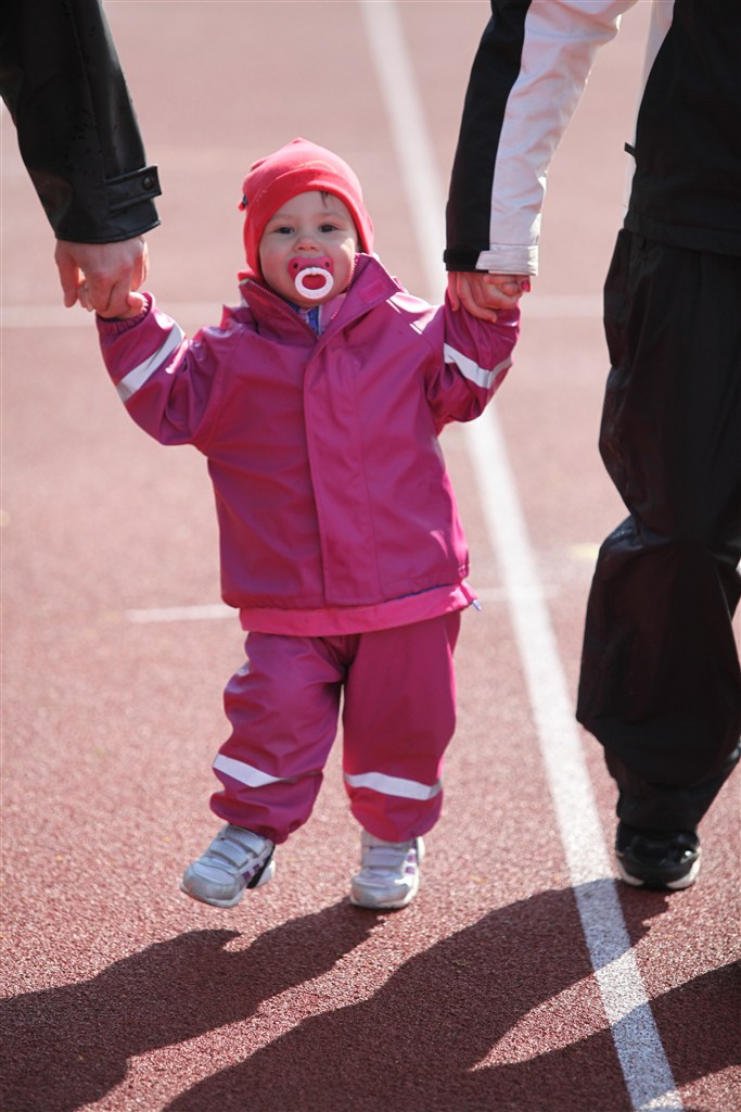 Hihi, og hun var så stolt af den medalje hun fik, da hun kom i mål.. Hun blev lige lidt forvirret da der kom en fremmed dame og hængte den om halsen på hende, men den blev virkelig vist frem, da vi nåede op til hendes farmor og farfar efter løbet