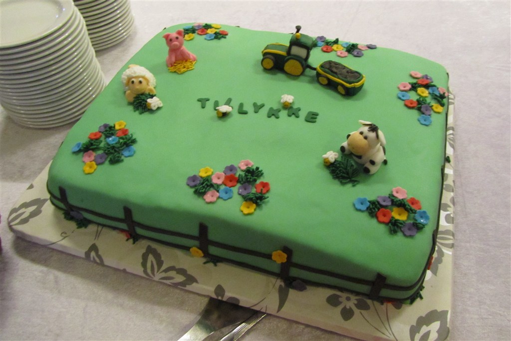 Hun fik to kriterier, der skulle være én med noget bondegårdstema, da far er selvstændig landmand med svinebesætning og markbrug (og glad for John Deere traktorer) og én med et klassisk dåbstema.