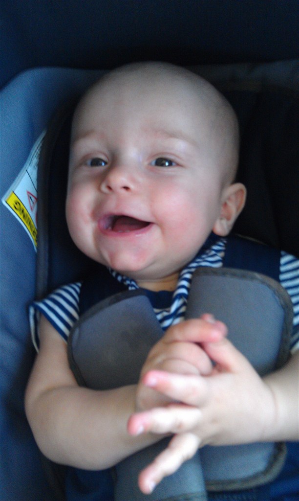 Han er 6 månder nu 3 næsten 4 tænder. Han ruller til tider.