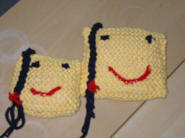 Jeg tror nok at det var pind nr. 5 og vist nok 60 masker jeg slog op. Men det med pinden vil jo afhænge af hvilket garn du vælger. Jeg kan stort anbefale effektgarn med "pels" til nogle af felterne og i det hele taget det at garnet føles forskelligt fra felt til felt. Det virker til at more Amanda at det føles forskelligt når man aer på den