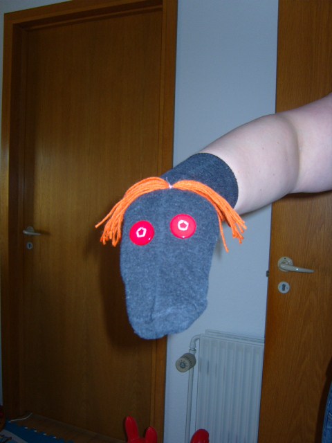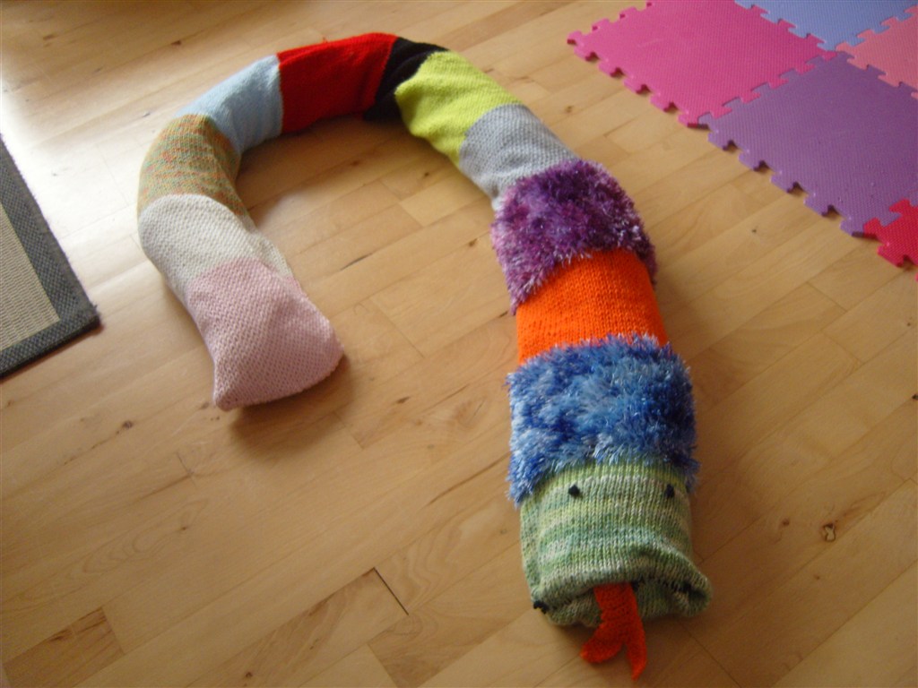 I øvrigt er der en lille klokke i slangens hovede som jeg nappede fra et gammelt legetæppe der skulle ud. Så den ringler når hun trækker i den