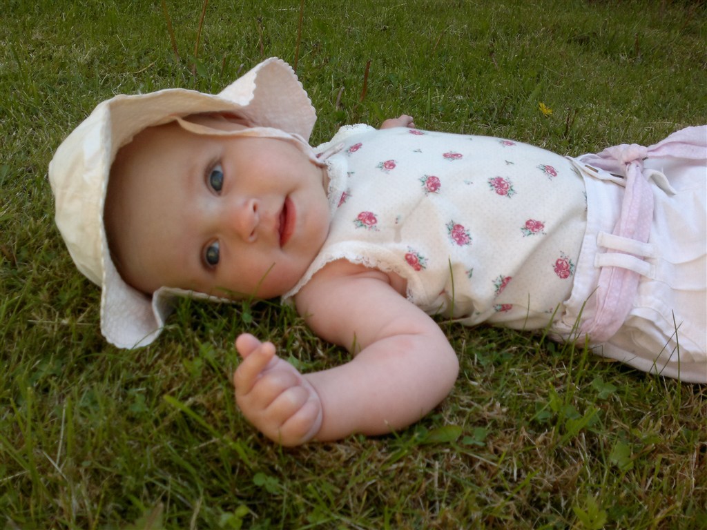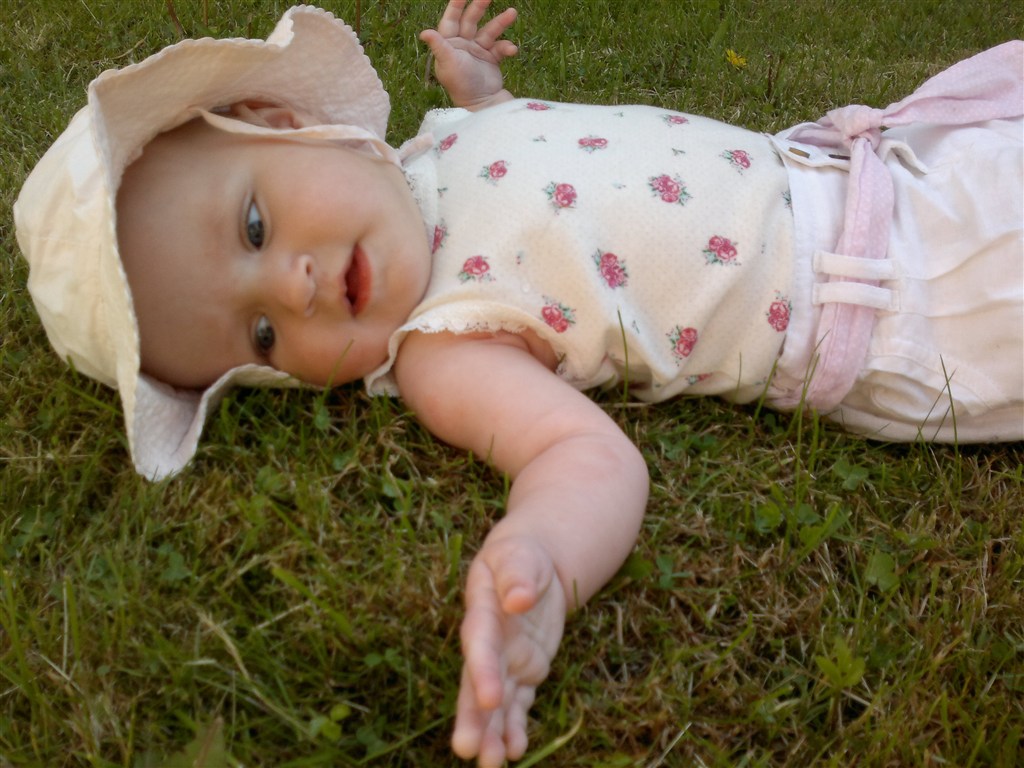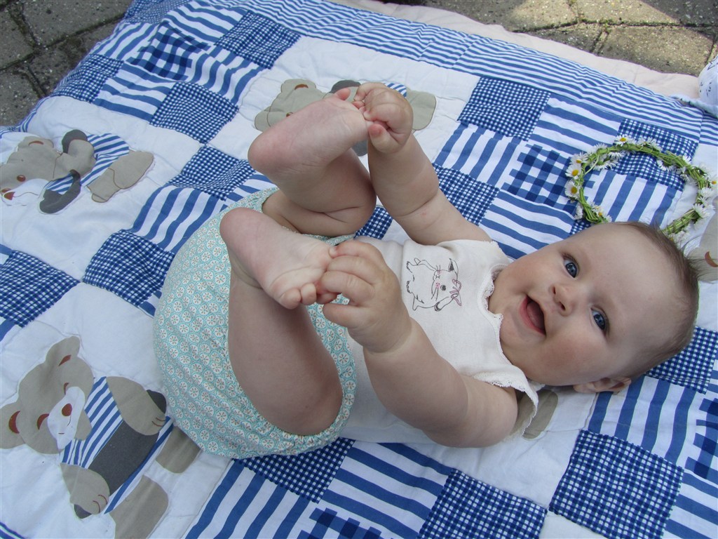 Wimmie skriver: Mila har rigtig nydt varmen 5½ mdr. - 68 cm og 7100 gram ren lækkerhed