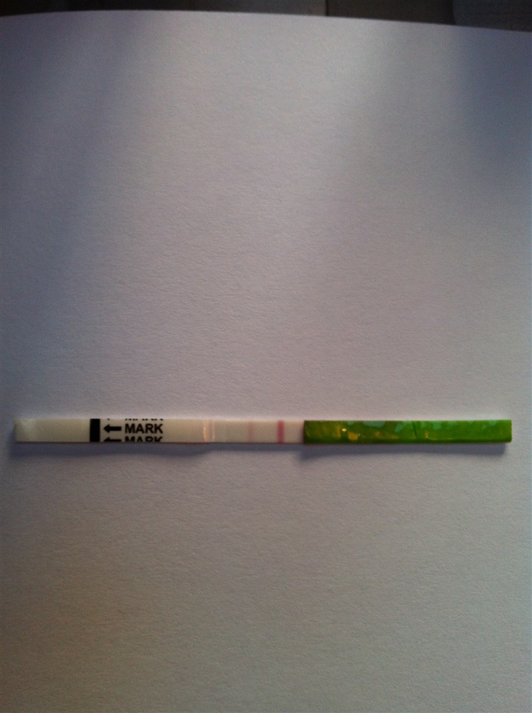Den er også positiv. Den streg ned mod (enden man tisser på) skal være ligeså tydelig eller tydeligere end den anden streg.