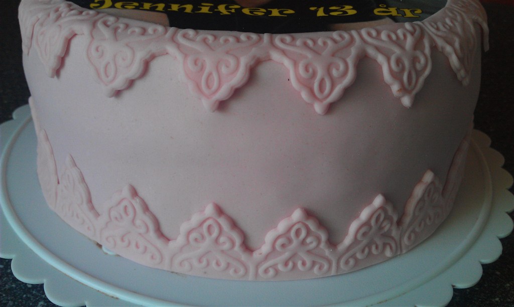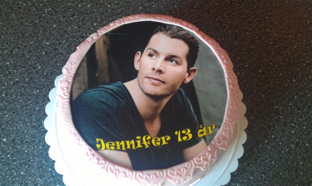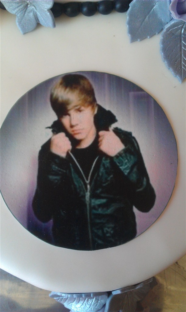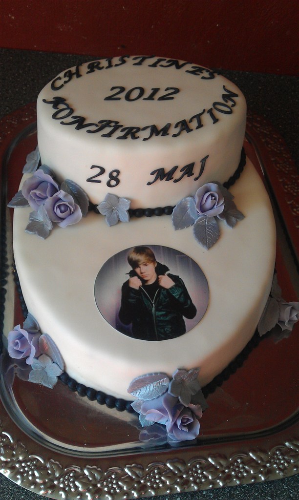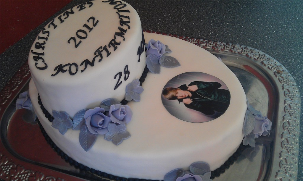 Den hvide kage en konfirmationskage, hun var helt vild med Justen Bieber, og det var hendes kæreste, der skulle have bil kagen