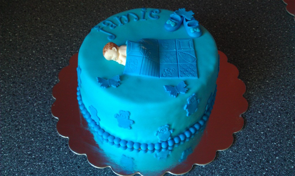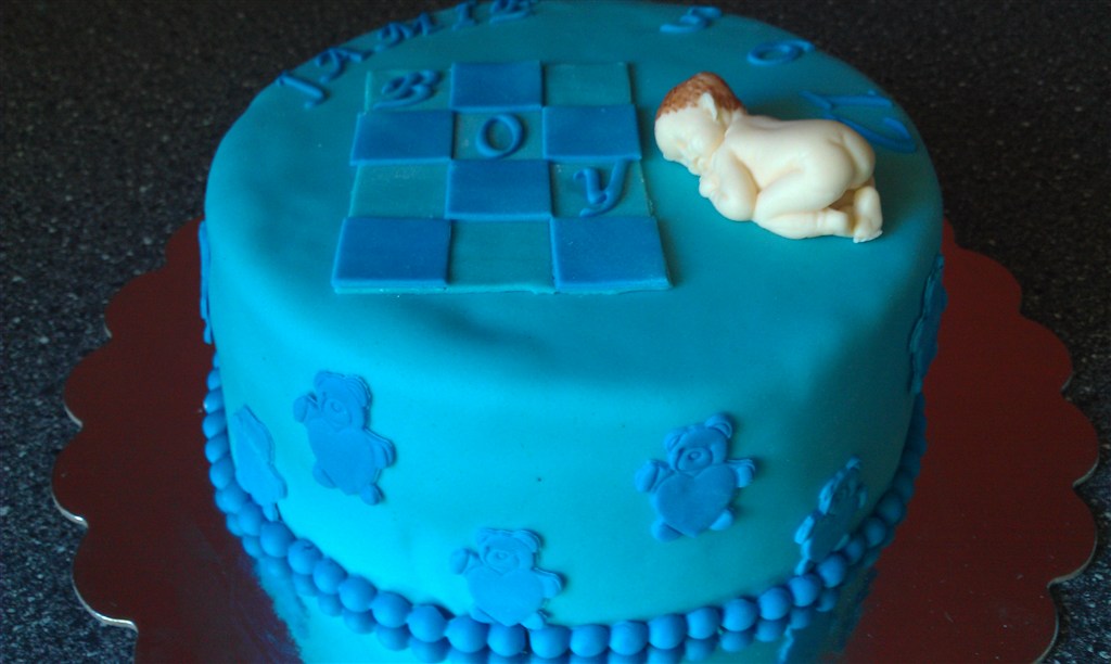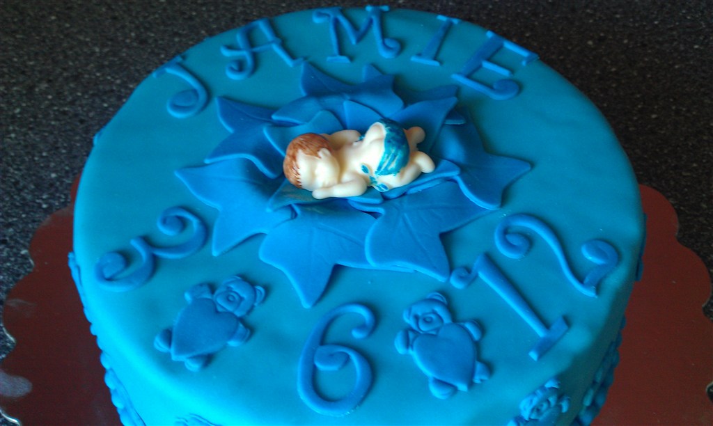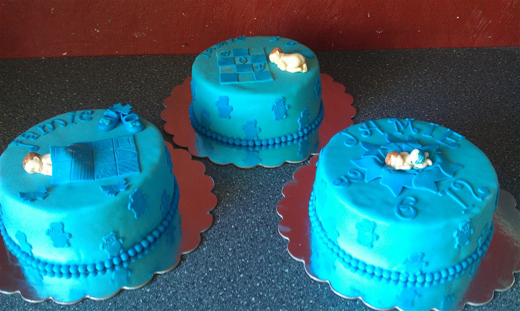 De blå dåbskager er til i dag, en hurtig bestilling i onsdages, hun havde set mine kager i smykkebutikken