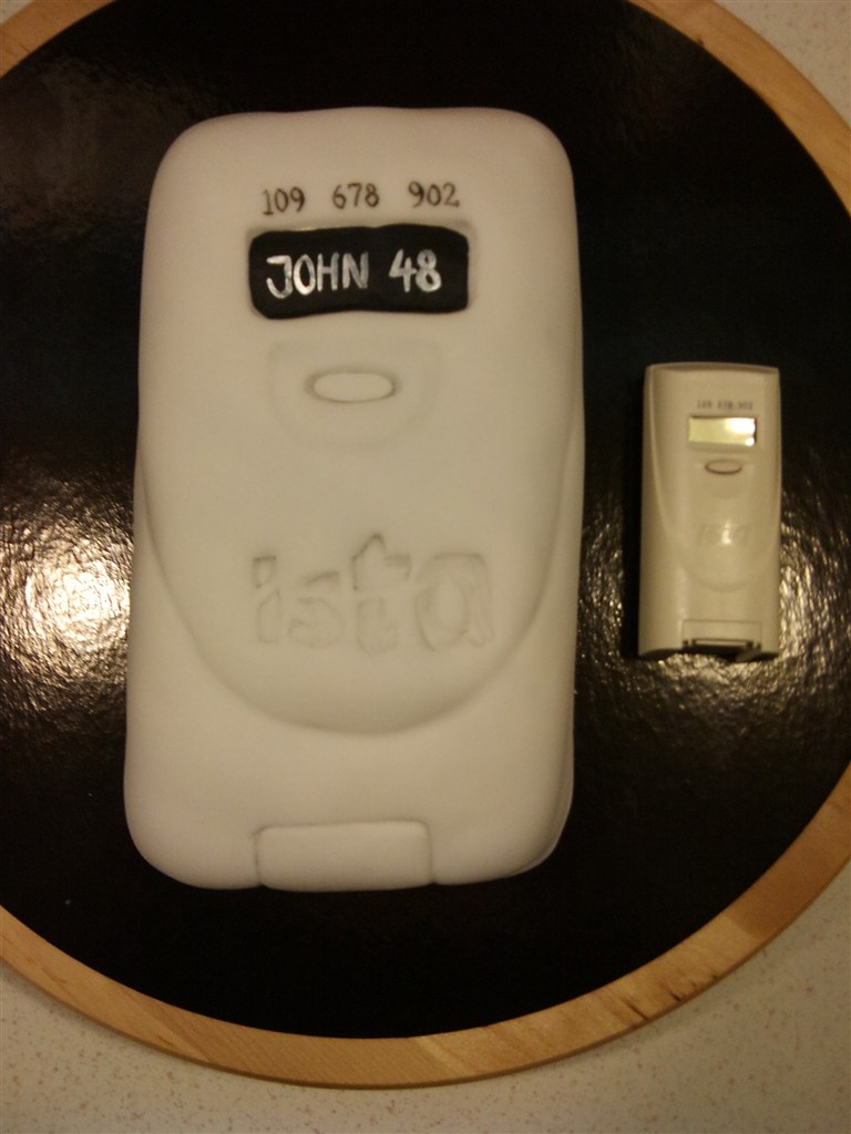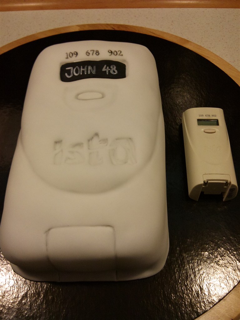 Dot D skriver: Kage til én der aflæser varmemålere på radiatorer. Det er chokoladekage lagt sammen med PSC med Temp 12 cider og smurt op med chokoladesmørcreme
