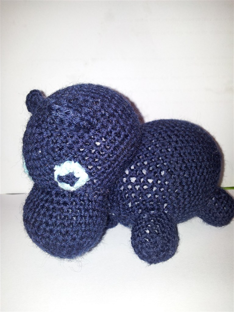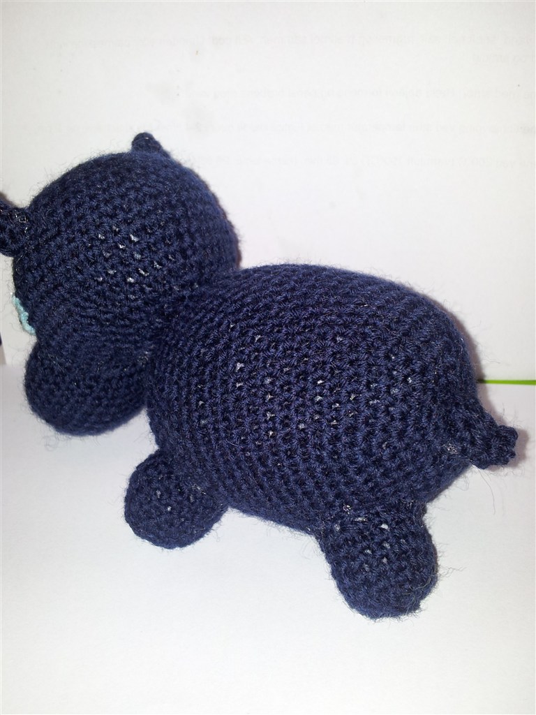 hvor er den sød, du er bare dygtig Jeg er jo igang med ugler der er ret store og har fundet en opskrift på en stoooooooor flodhest. Jeg gider ikke lave de helt små dyr - hvor stor er ham her?