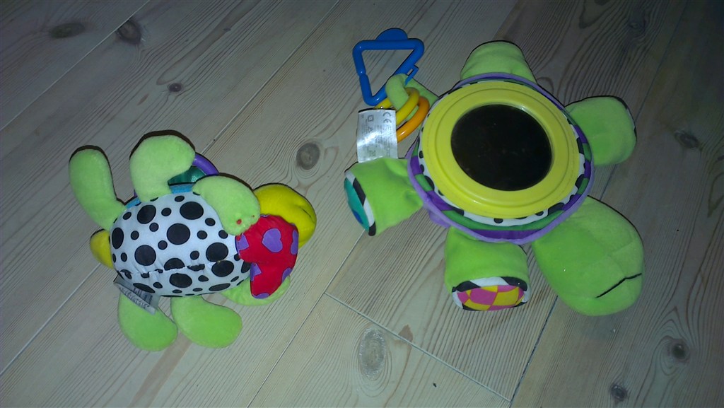En skildpadde, taget oppe og nedefra. Spejlet er en anelse ridset.