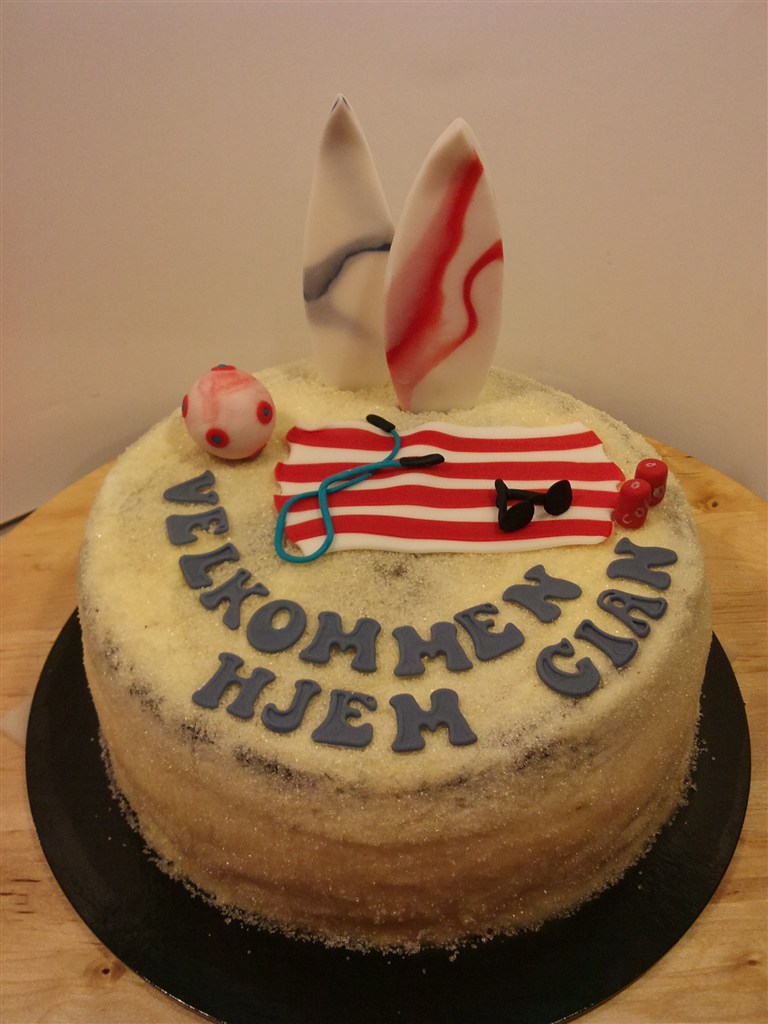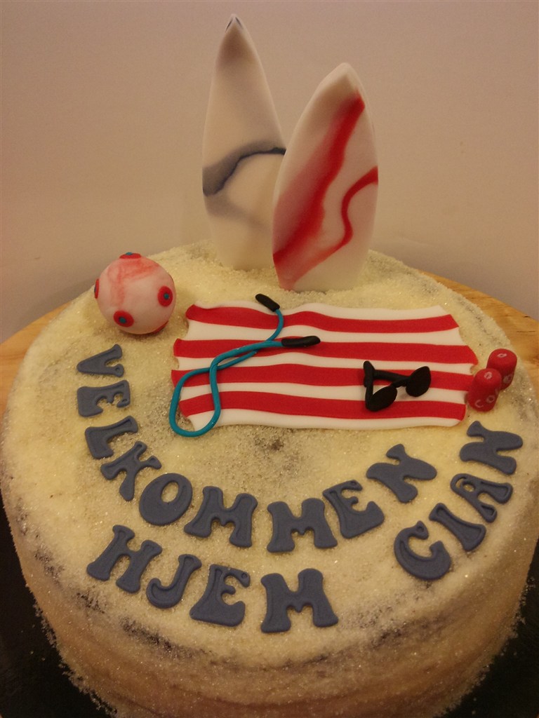 Det blev til en sandstrand med et par surf-boards, håndklæde og badebold....