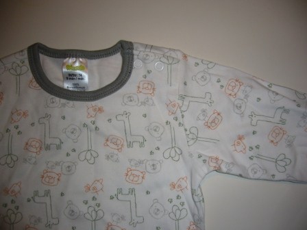 Så har jeg en lidt mere neutral body (lys-grå kant) med små dyr på (HELT NY) str. 74 - tænker det både er til pige/dreng