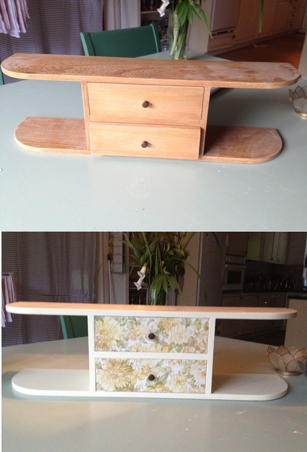 Jeg har i lang tid samlet skuffedimser og andre sjove ting, som måske kunne forskønnes med en klat maling og noget tapet. (Det er jo såmoderne for tiden.