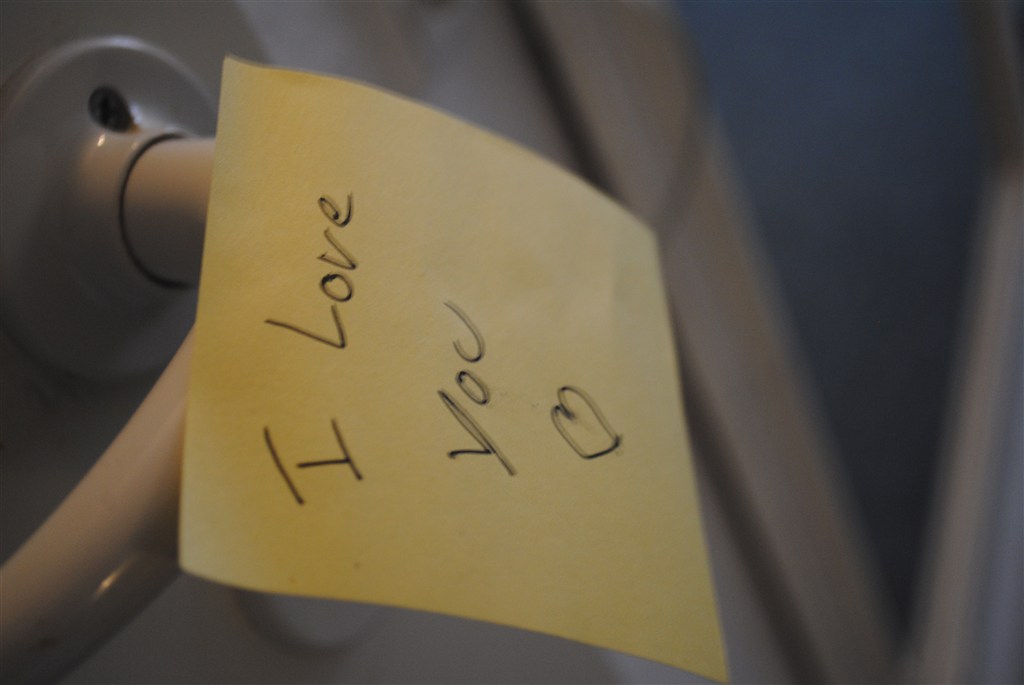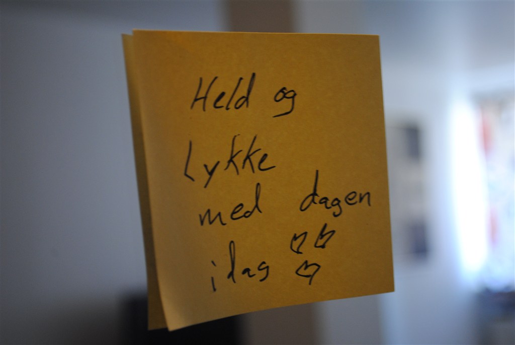 stod jeg op til i alt 7 post-its rundt omkring i lejligheden. På dem var skrevet små, søde beskeder fra min dejlige kæreste