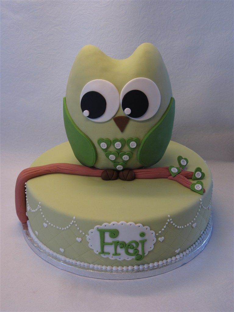 Fik lov til at lave denne uglekage til min klassekammerat fra folkeskolen.Fik helt frie hænder, hvis bare den IKKE blev lyseblå Her er den lille nuttede