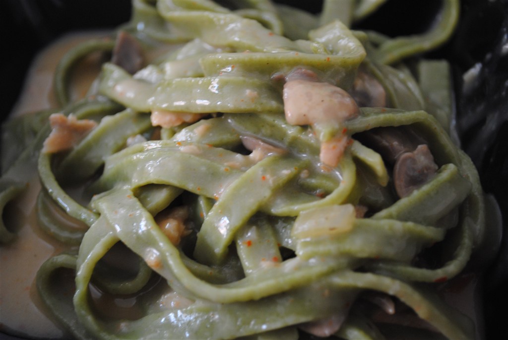 Lakse stykker og rejer stegt på pande, friskhakket urter, hvidløg, tomater, salt, pebber, Citron og lidt olivenolie blandet med frisk kogt pasta. Mums fantastisk. Lavede den samme udgave dagen efter, bare med kylling i stedet for fisk! Vh stine