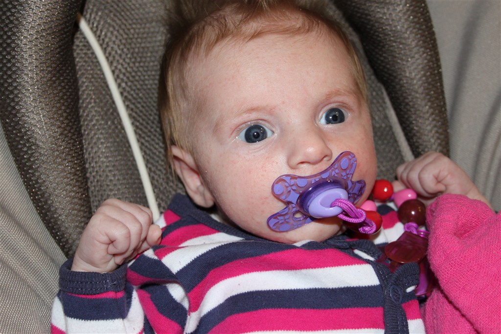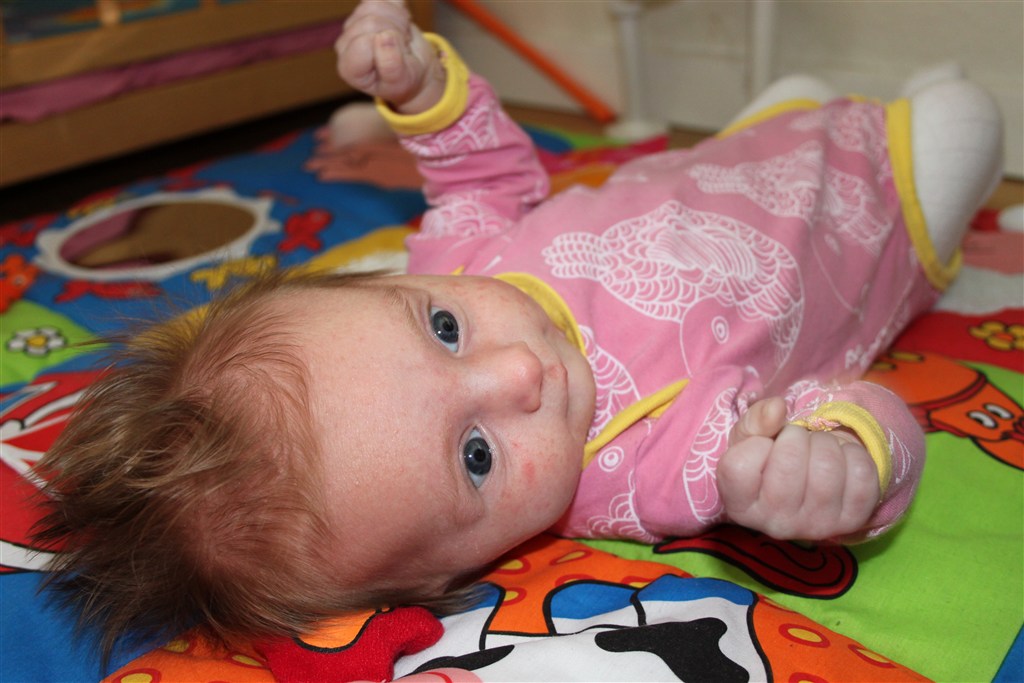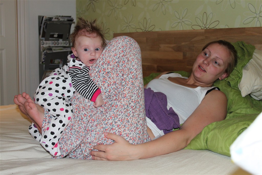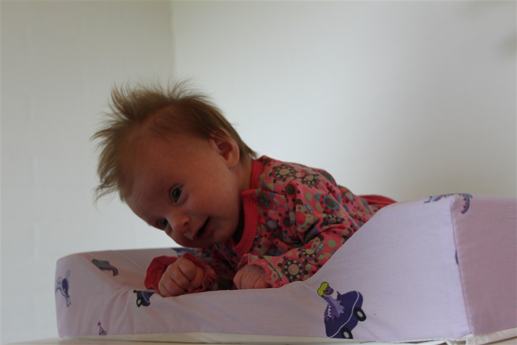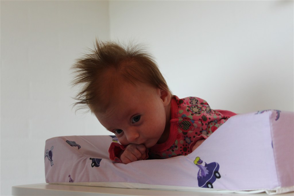 Det går bare så godt herhjemme, Filucca er så nem og stortrives. I fredags var SP her, Filucca er nu 57 cm og vejer 4480g. Syntes det går så stærkt. Vi er så småt begyndt med tøj i str. 62.