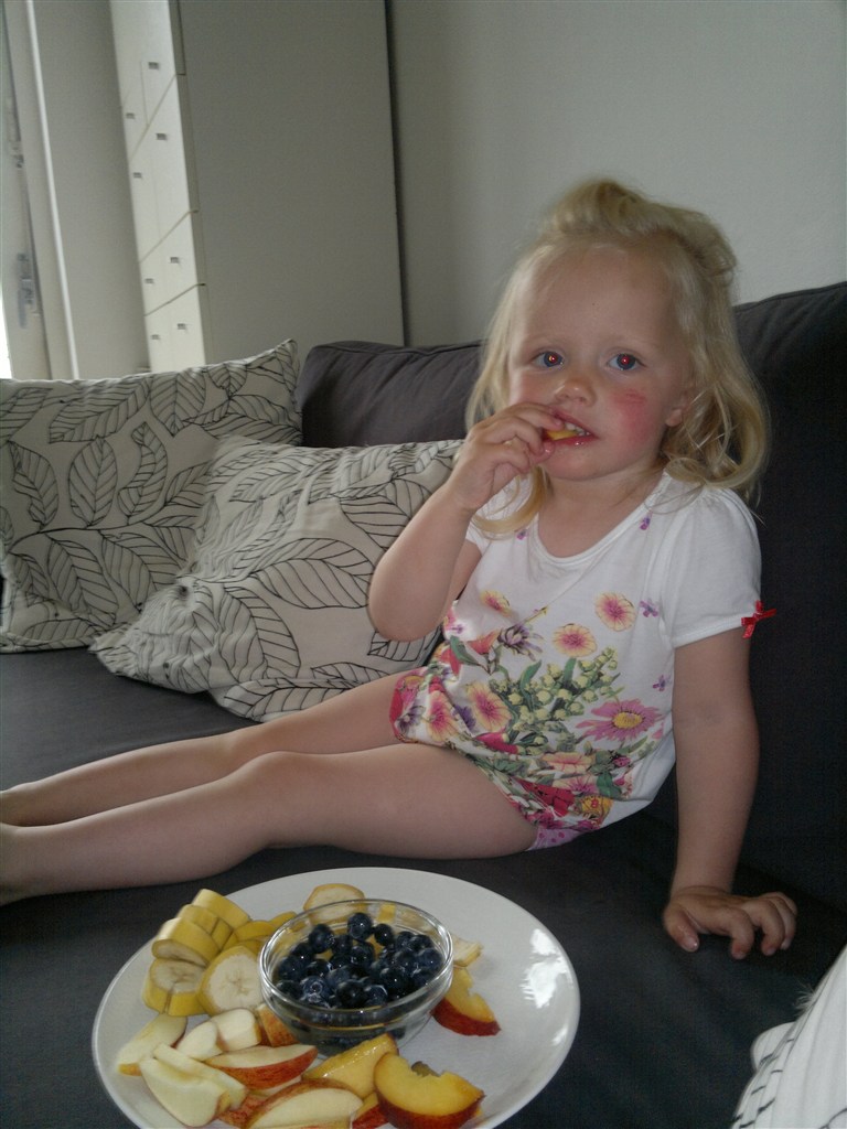 Laura og jeg plejer gerne at spise lidt frugt til dessert men i dag skulle vi rigtigt forkæles så vi lavede lige en kæmpe "slikskål" til aften