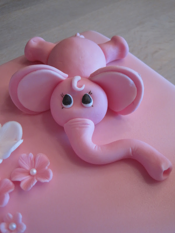 Chokoladebunde, jordbærmousse og hvid tobleronecreme. Smurt op med PSC og pyntet med fondant.