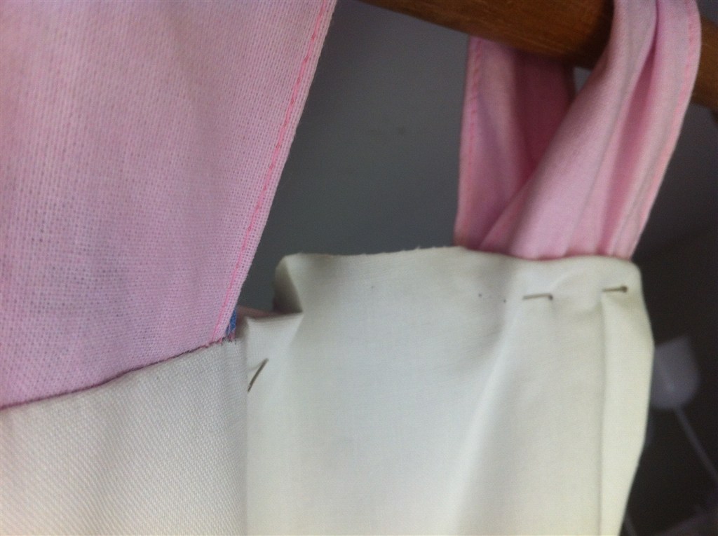 de er hjemme syes og har ca kostede 650 at lave der er mærklægnings stof på bag siden og der mangler en lille syning der hvor jeg har taget billede fra bagsiden