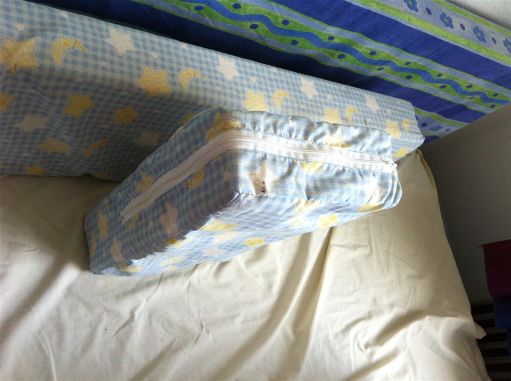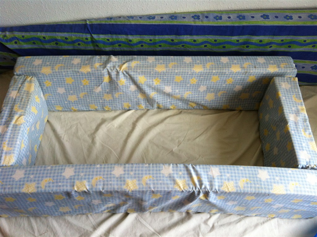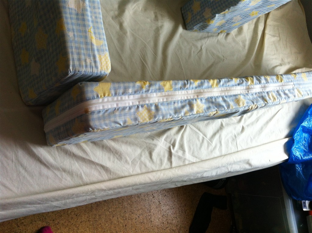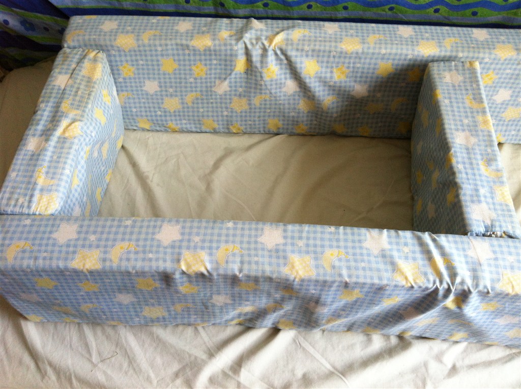 Da jeg ventede min første søn lavede jeg selv en sengeforminsker ud af en skummadras og betræk der kan tages af og vaskes og de to små kan rygges alt efter hvor lang sengen skal være og når den skal være breder kan man starte med at tag den ene af de lange hynder op