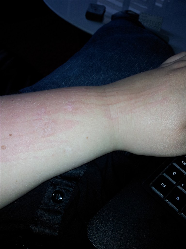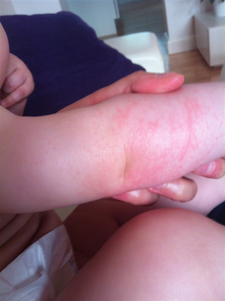 Ligner dermografi, eller nældefeber. Det kan jo også sagtens være han er erlergisk overfor noget, evt. græspollen. Jeg ville lige bestille en tid ved lægen, vise ham dette billede og så bede ham lave en priktest på ham så i kan se om han er erlergisk ! Min søn har dermografi så det kan se farligt ud nogle gange :/